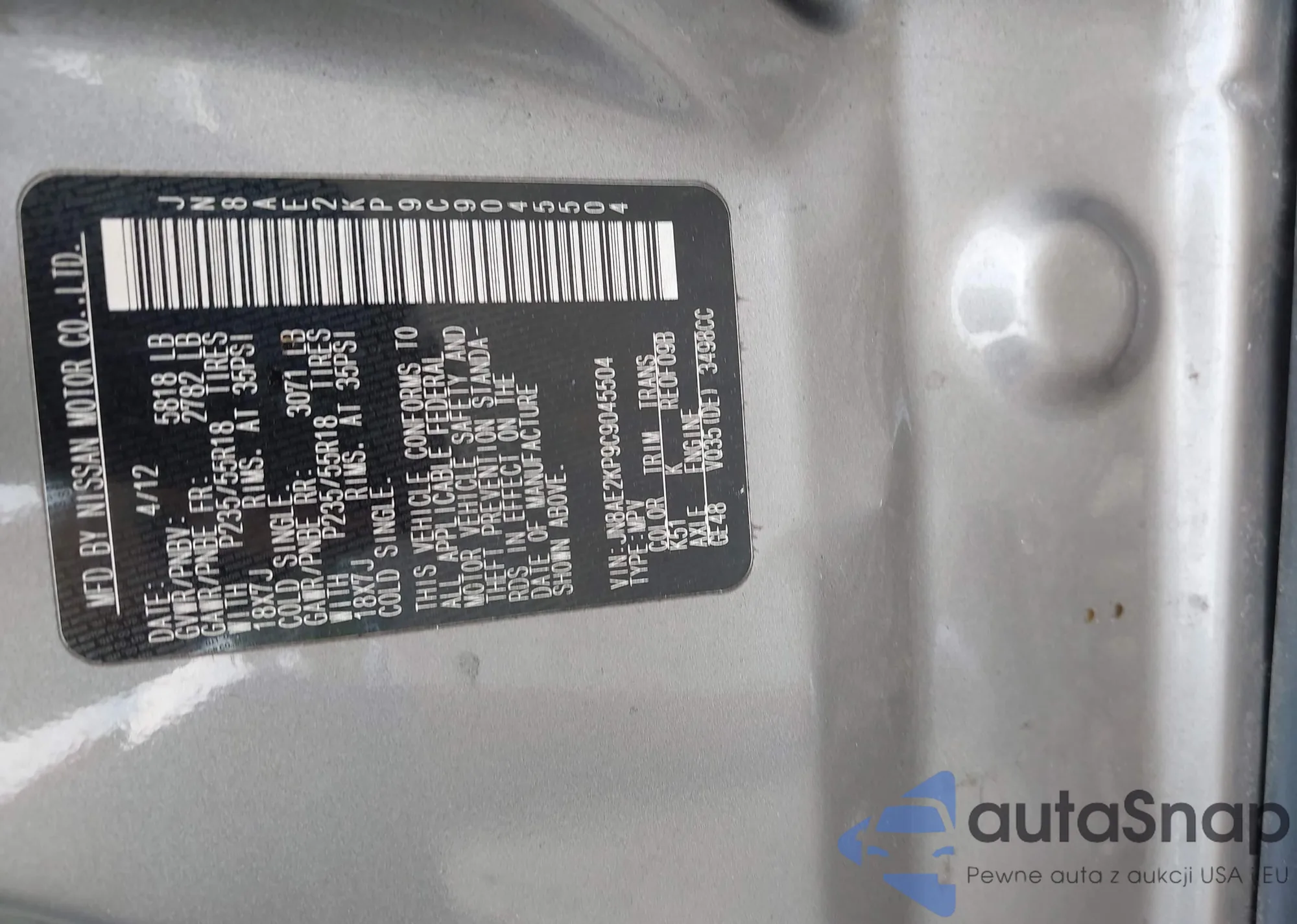 LOT: 42754870 VIN: JN8AE2KP9C9045504