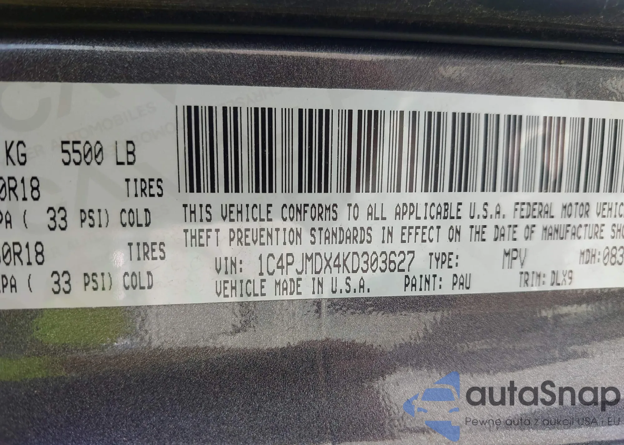 • VIN 1C4PJMDX4KD303627