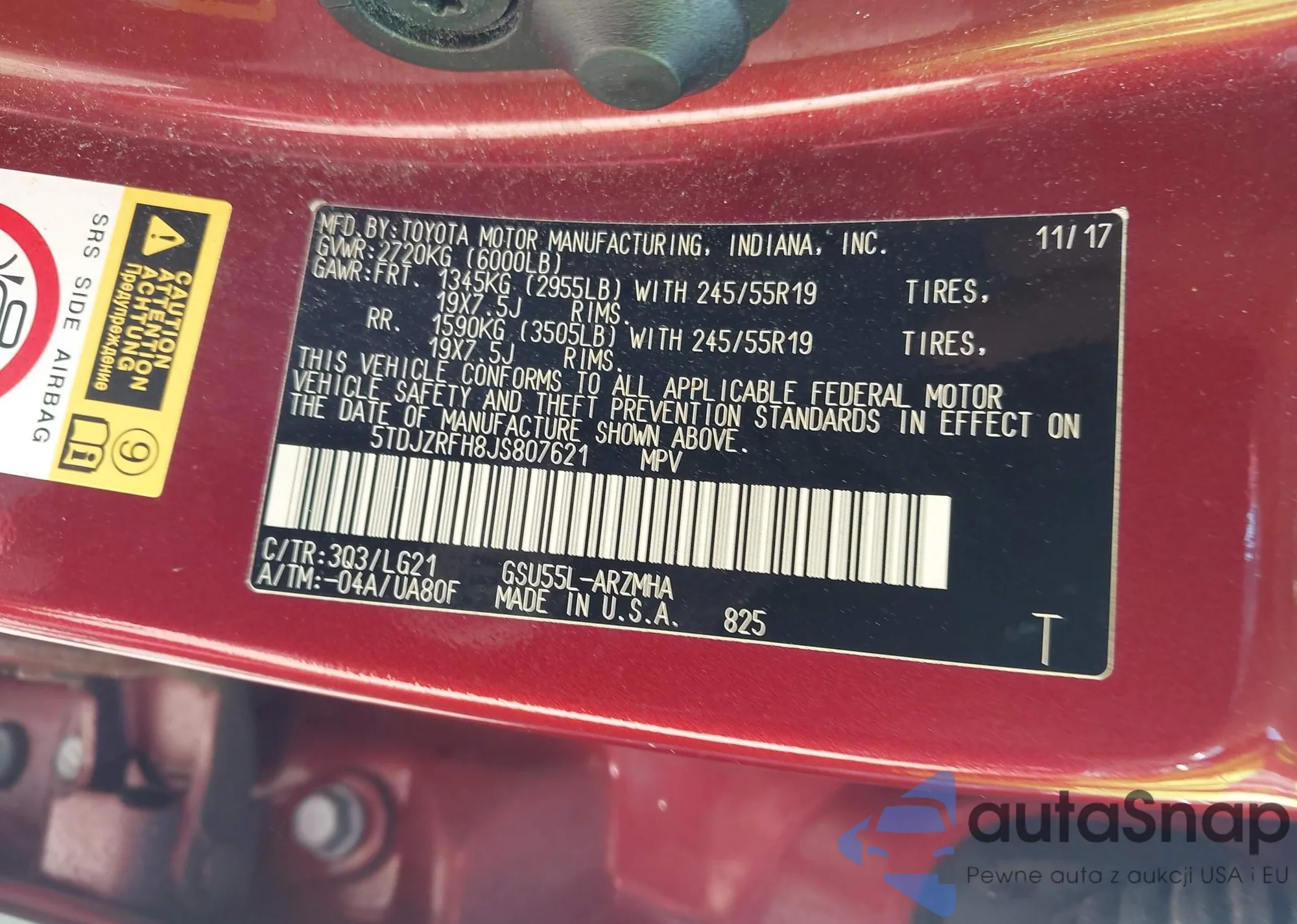 LOT: 42699520 VIN: 5TDJZRFH8JS807621