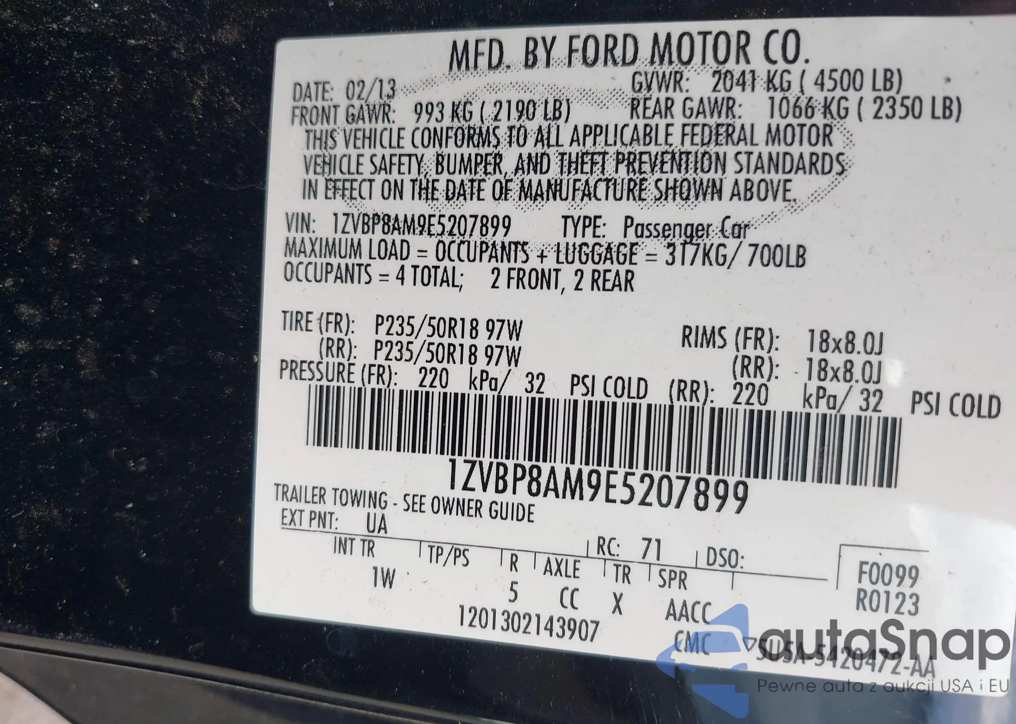 • VIN 1ZVBP8AM9E5207899