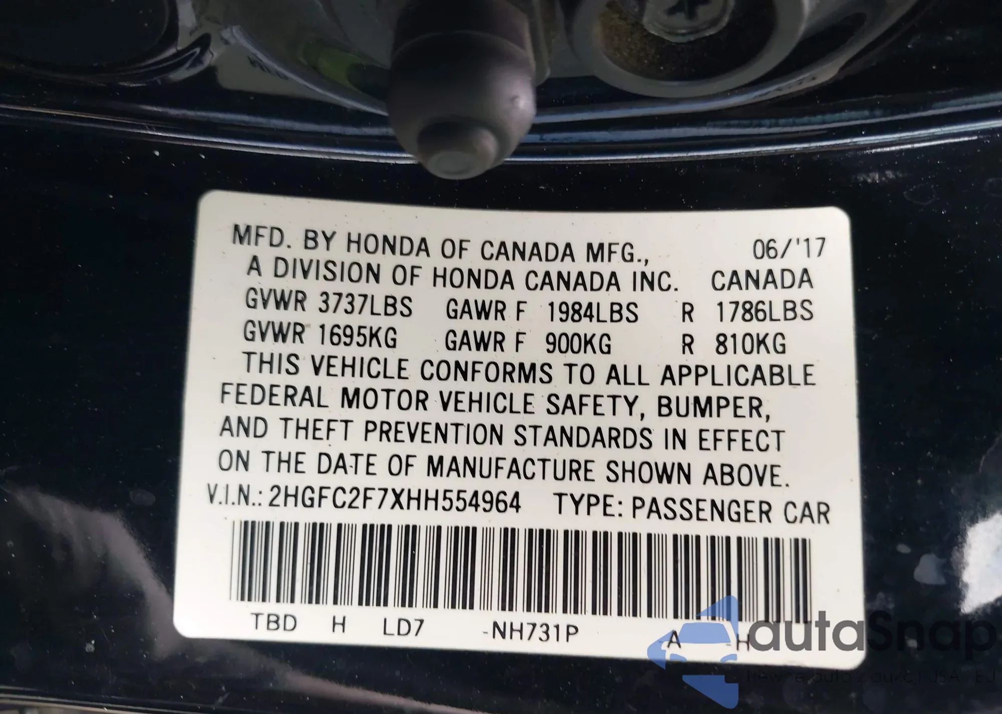 • VIN 2HGFC2F7XHH554964