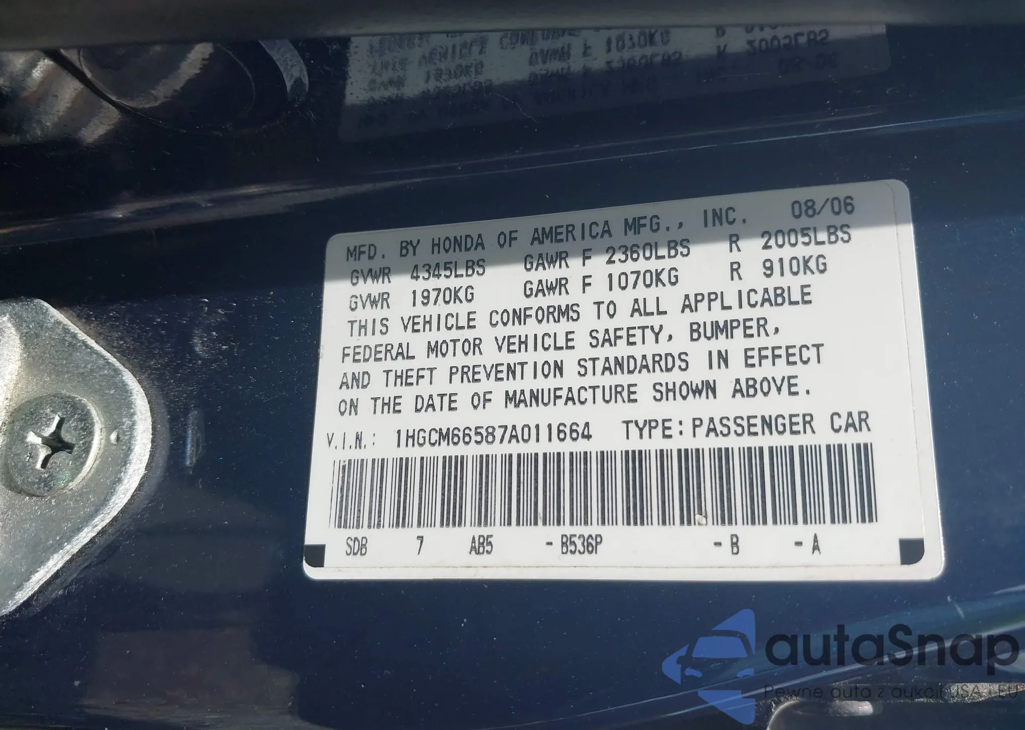 LOT: 42760452 VIN: KNADM4A37E6337949