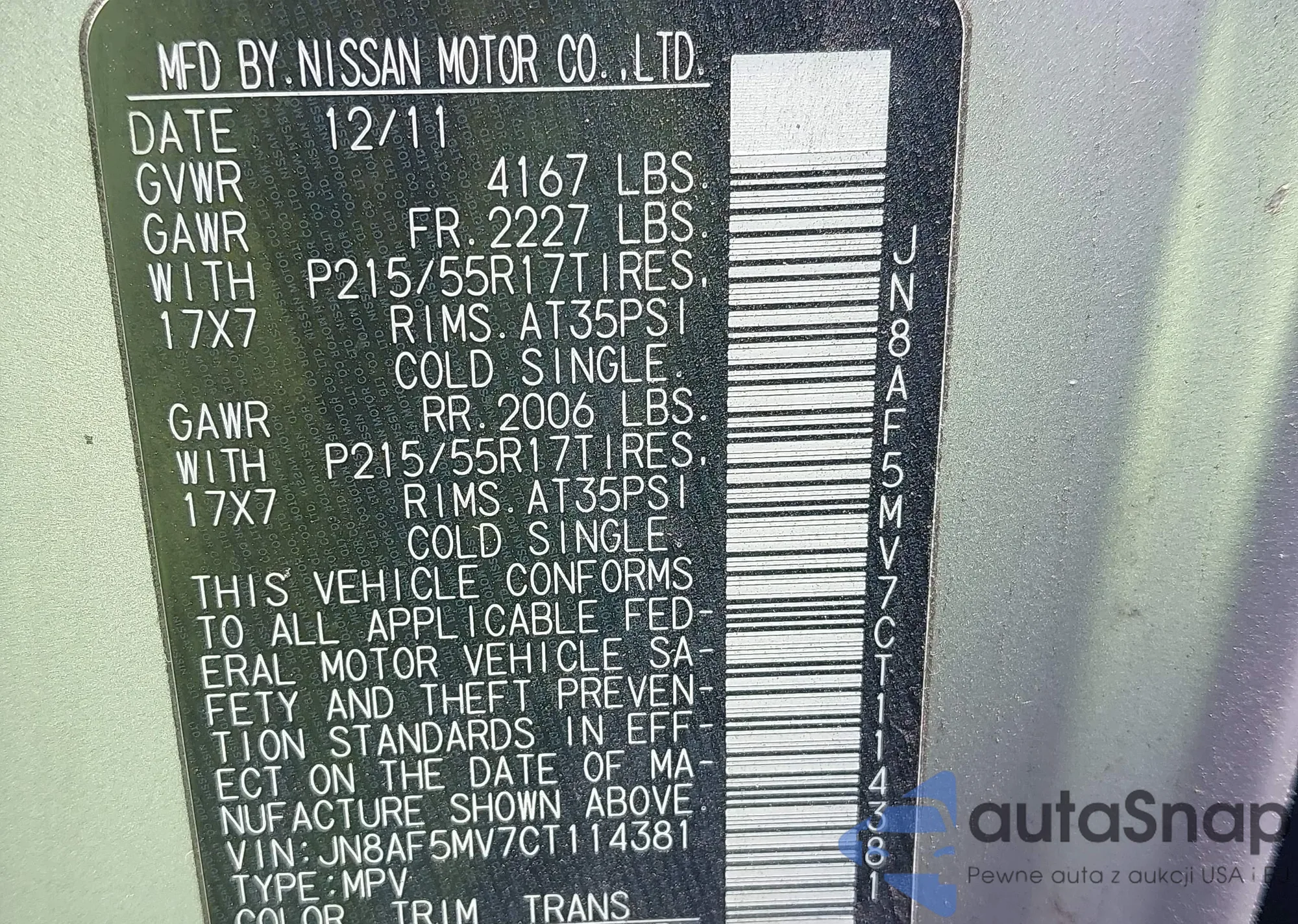 • VIN JN8AF5MV7CT114381