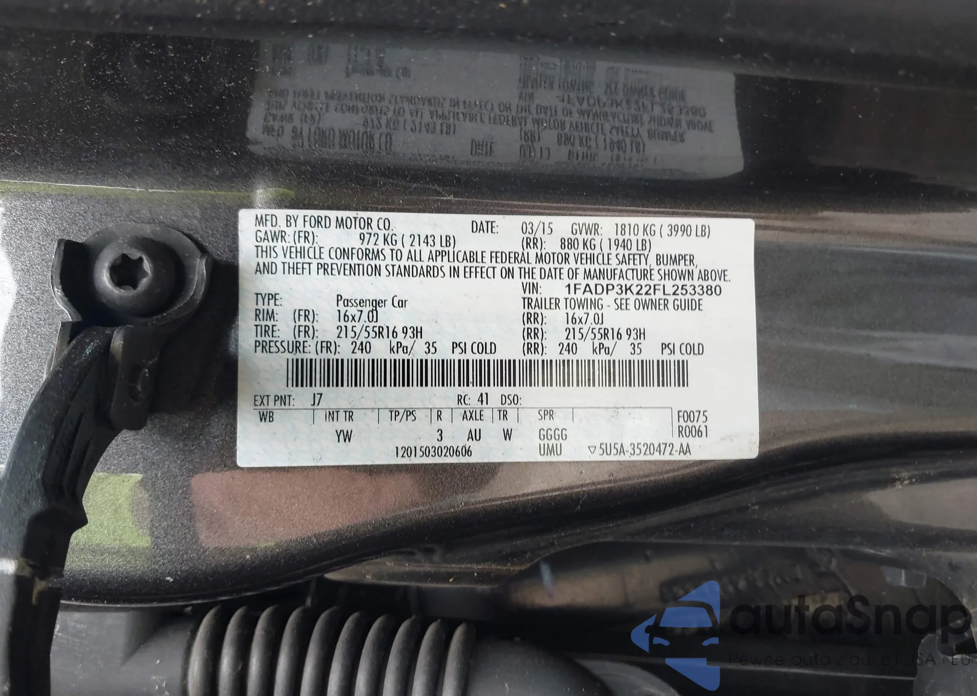 LOT: 42769727 VIN: 1FADP3K22FL253380
