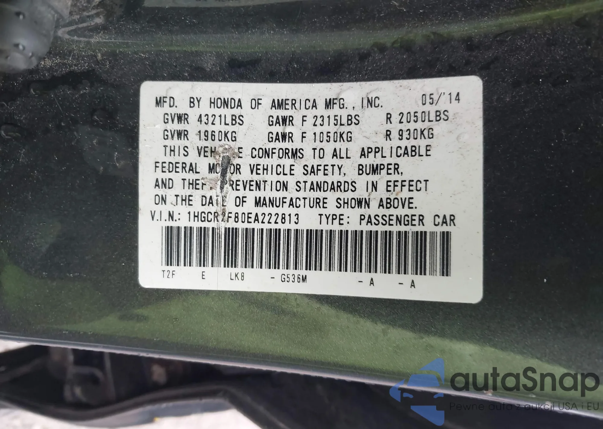 LOT: 43025714 VIN: 19UUA8F27CA002494
