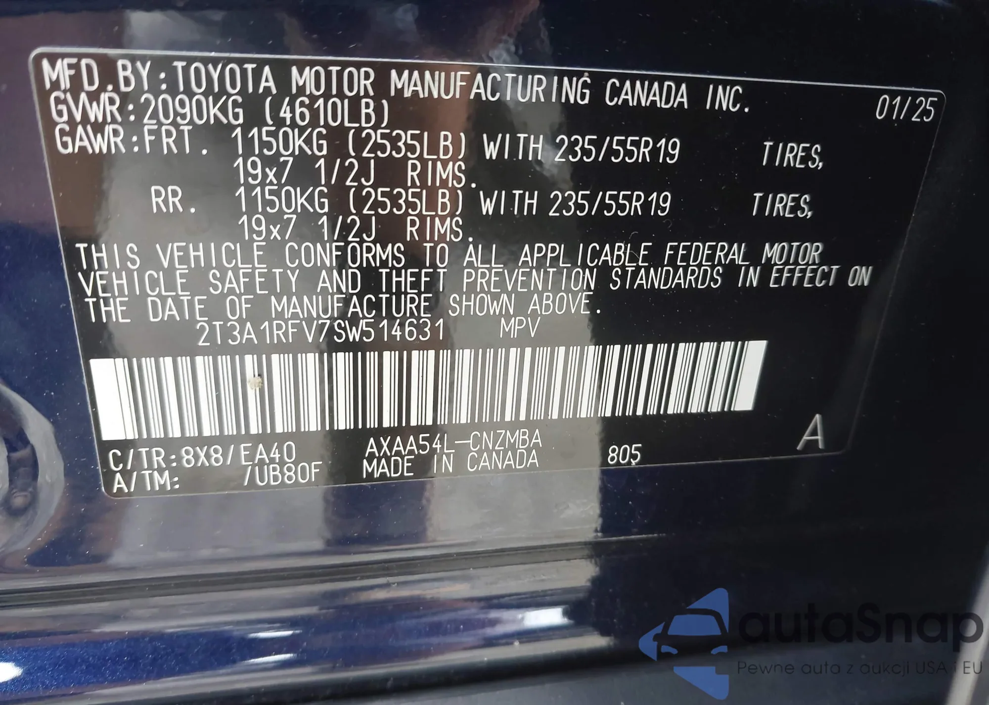 LOT: 42247225 VIN: 2T3A1RFV7SW514631