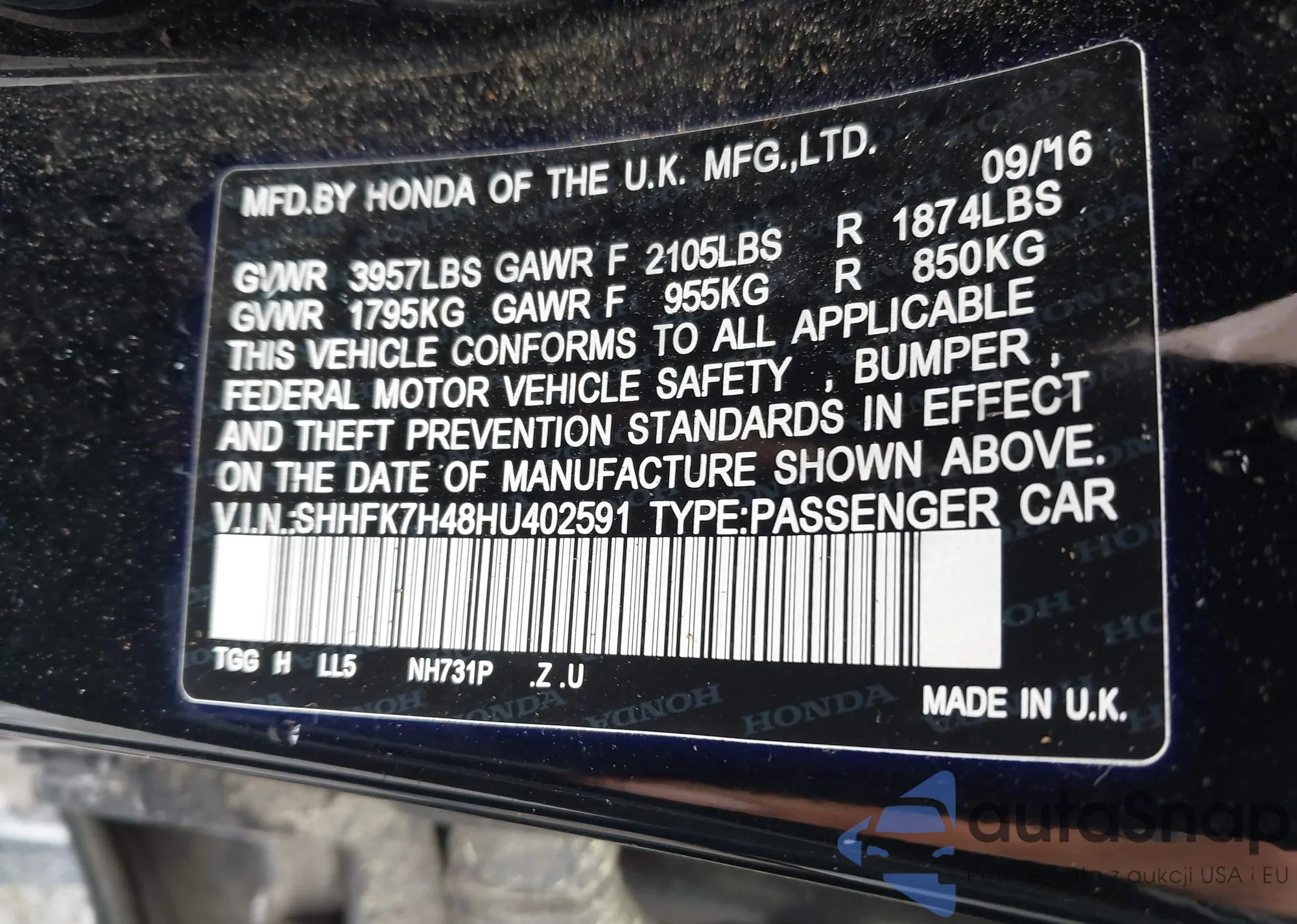 • VIN SHHFK7H48HU402591