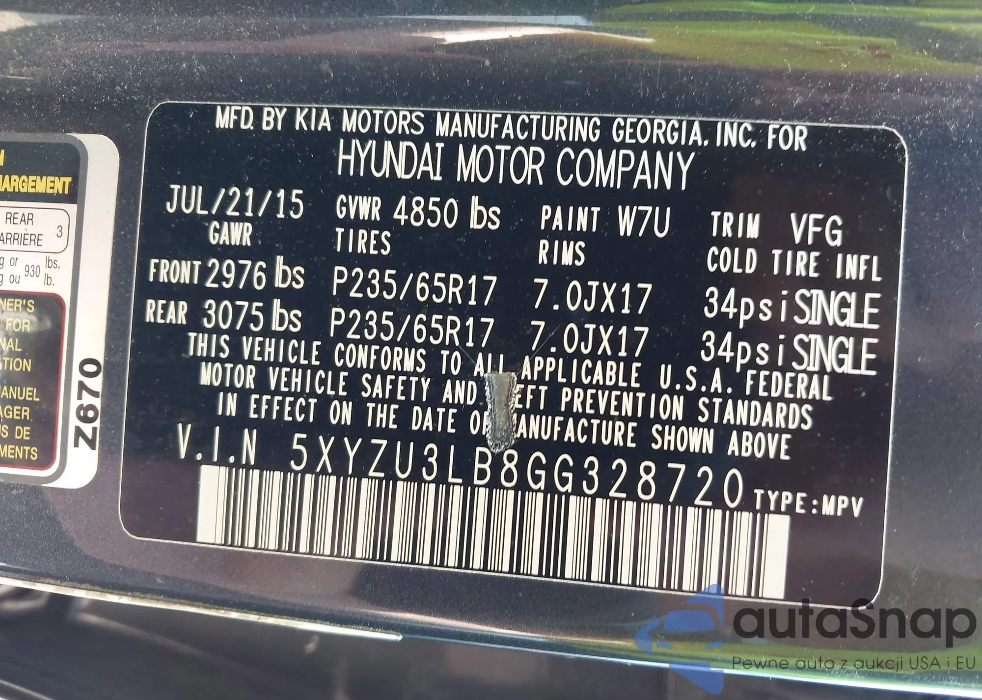 • VIN 5XYZU3LB8GG328720