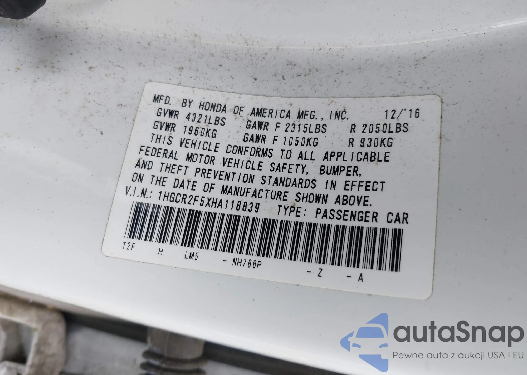 • VIN 5FNYG2H49SB017028