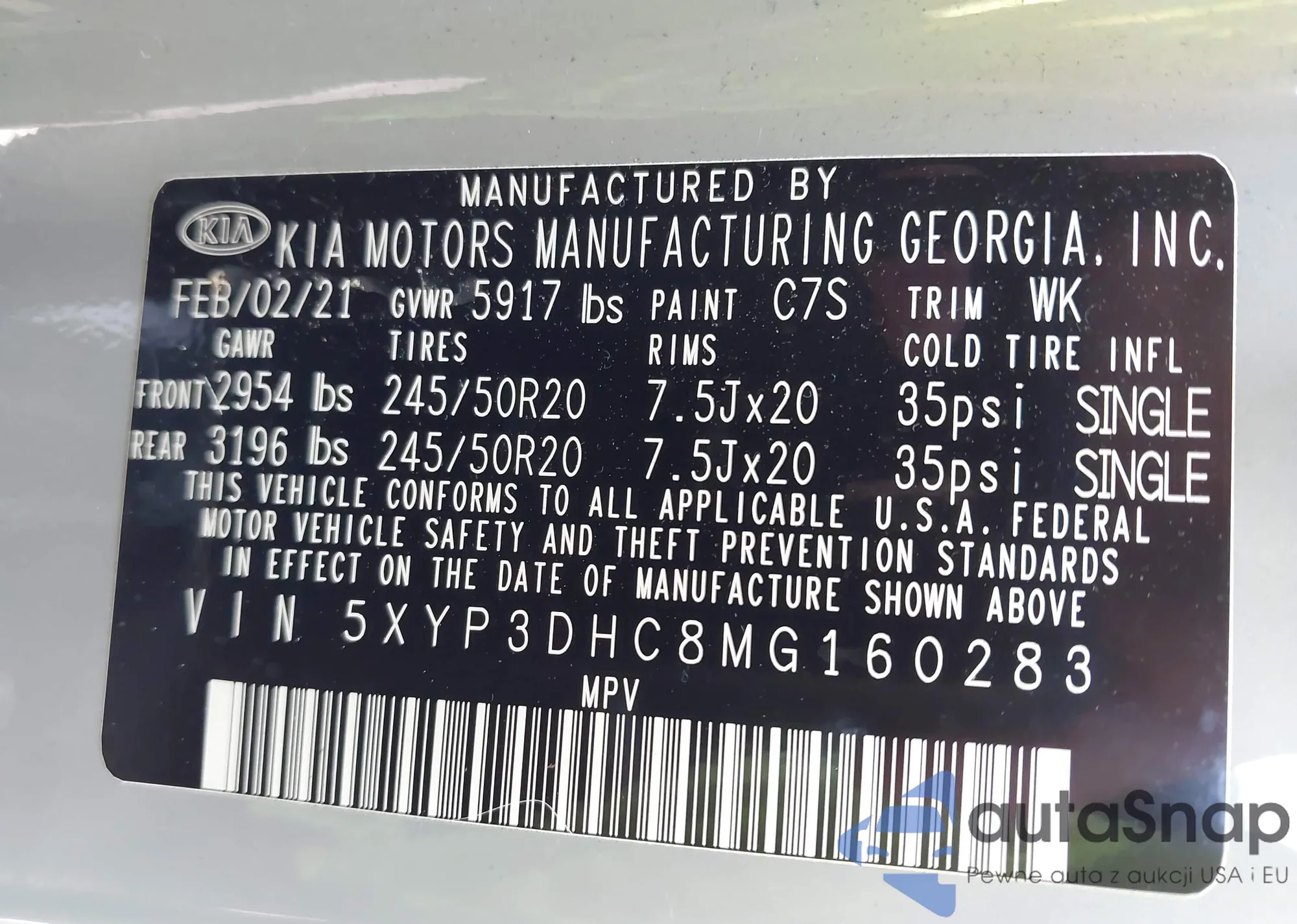 LOT: 42584753 VIN: 5XYP3DHC8MG160283