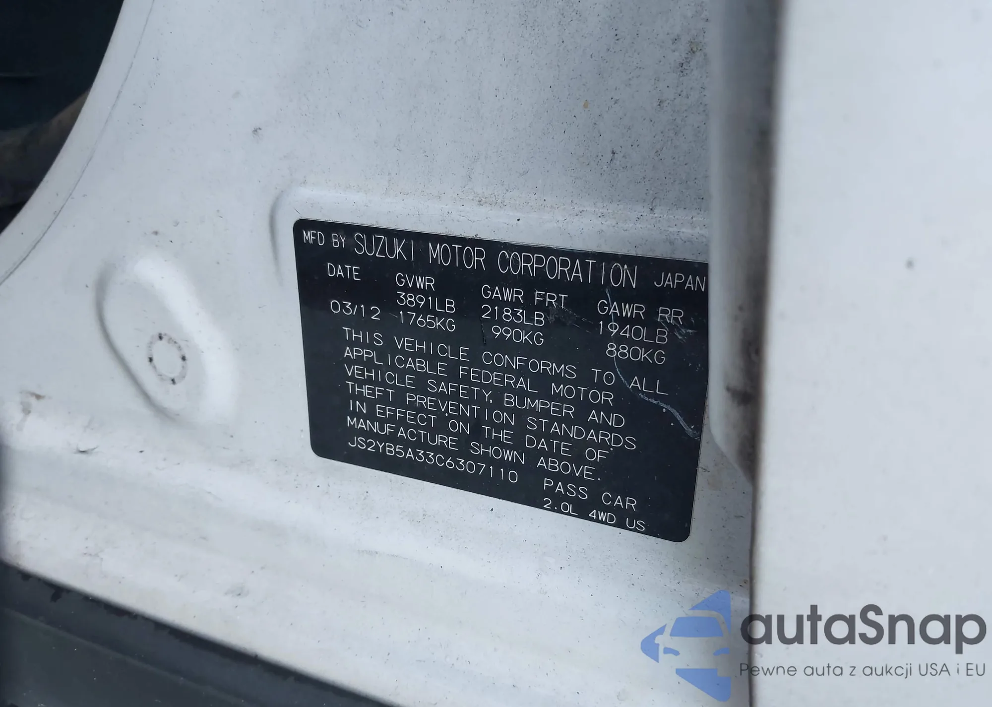 LOT: 42627853 VIN: JS2YB5A33C6307110