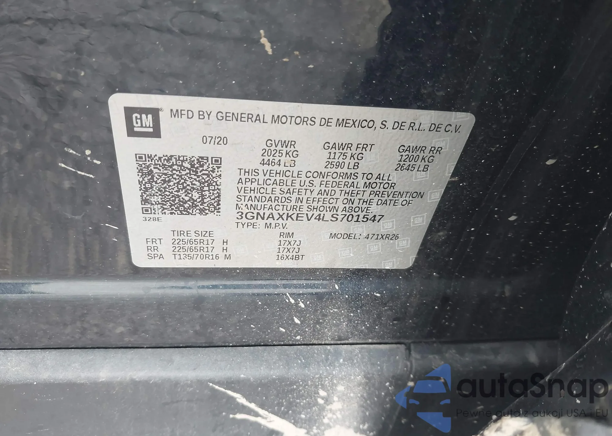 LOT: 42635821 VIN: 3GNAXKEV4LS701547