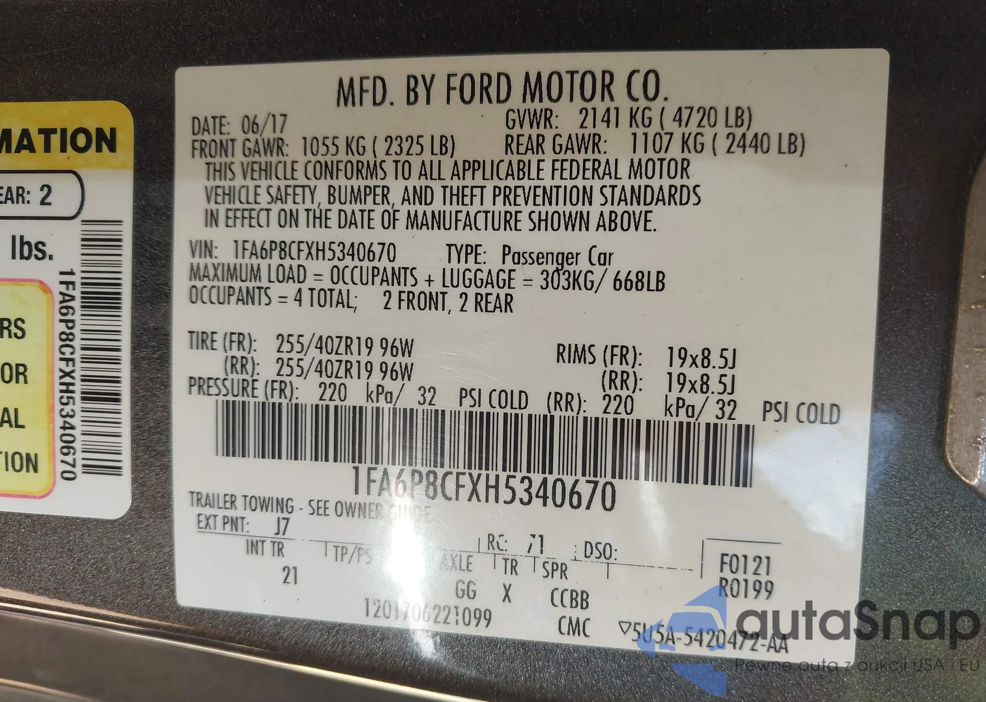 • VIN 1FA6P8CFXH5340670