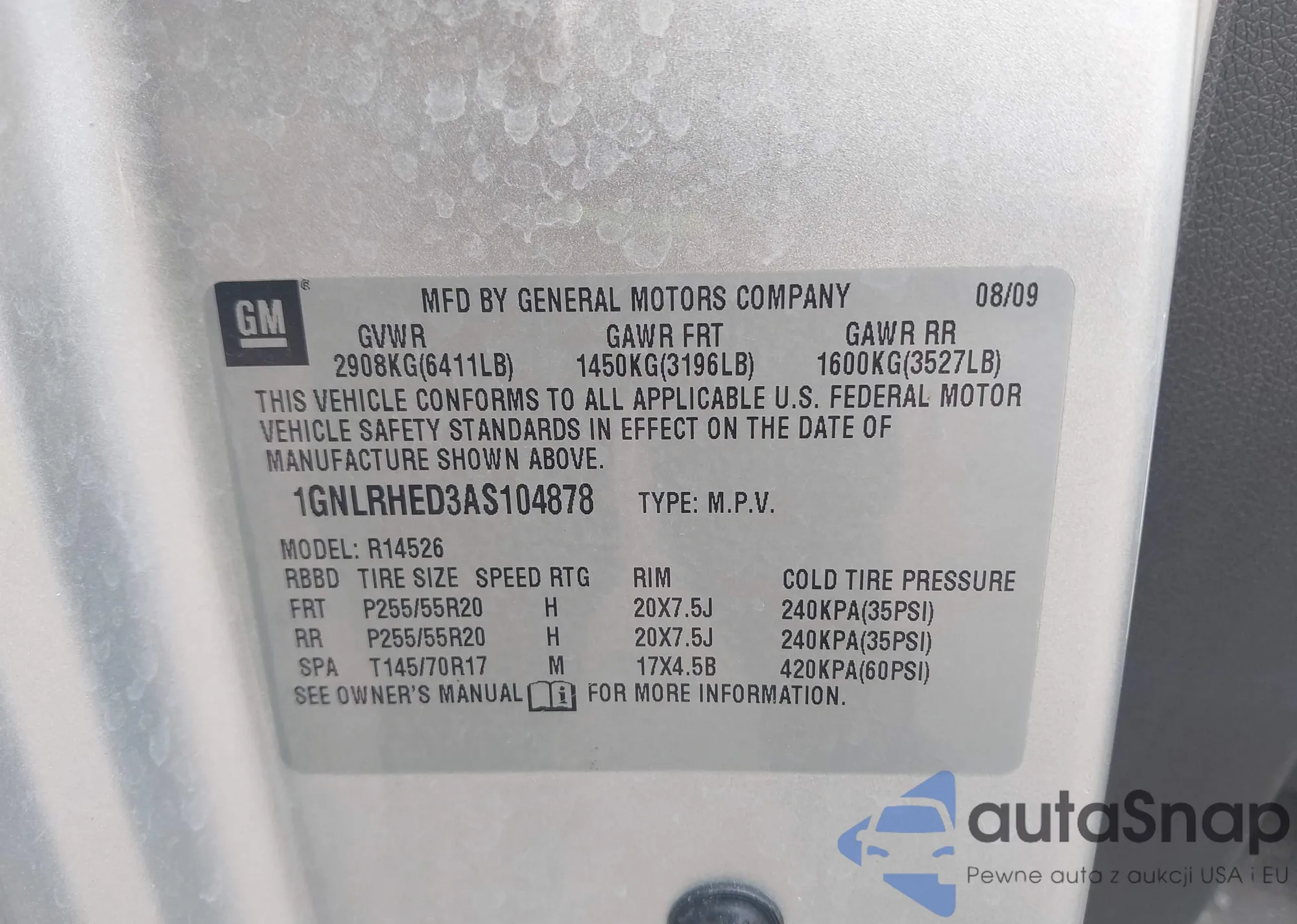 • VIN 1GNLRHED3AS104878