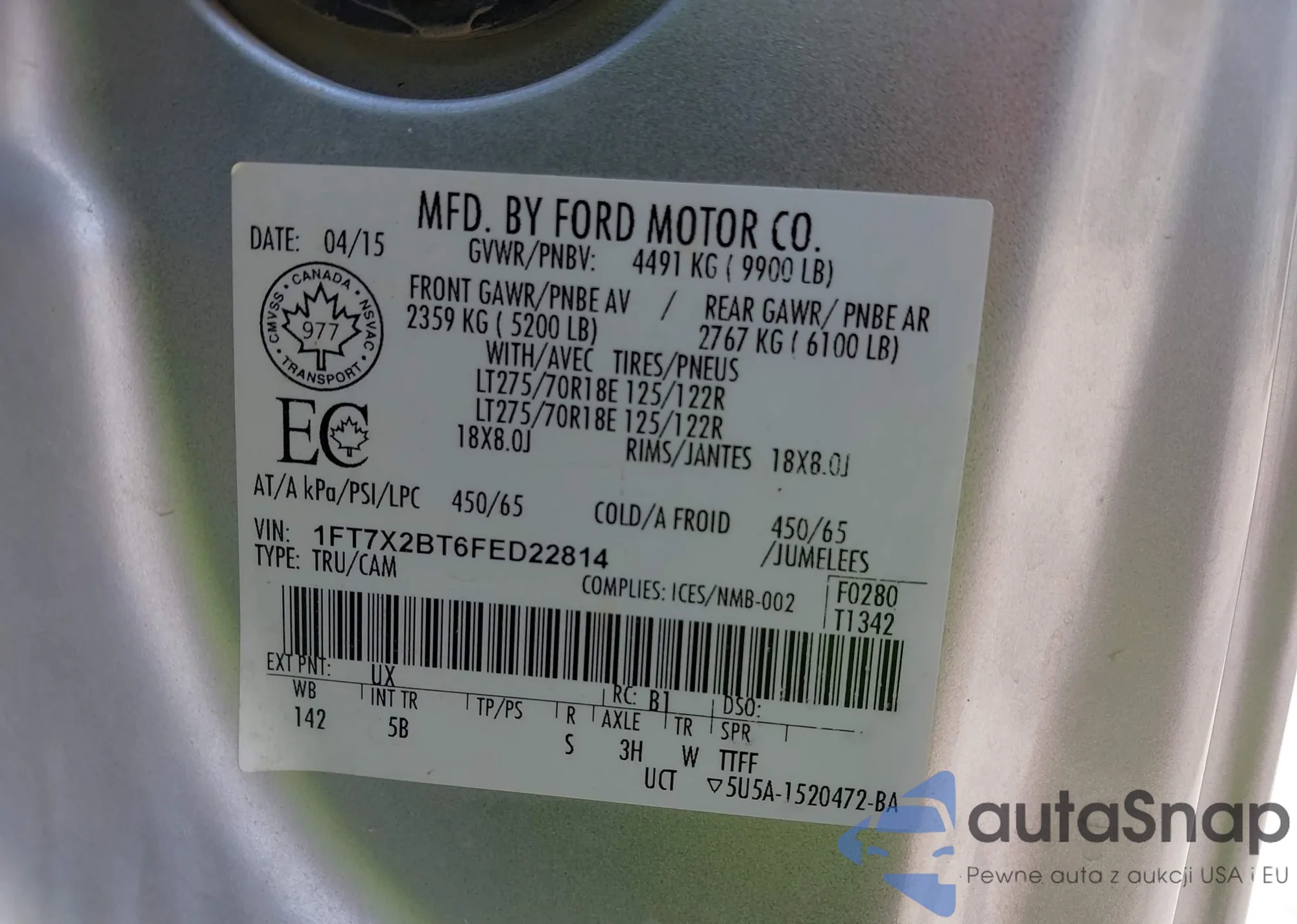 LOT: 42768031 VIN: 2FTRX17W21CA36107