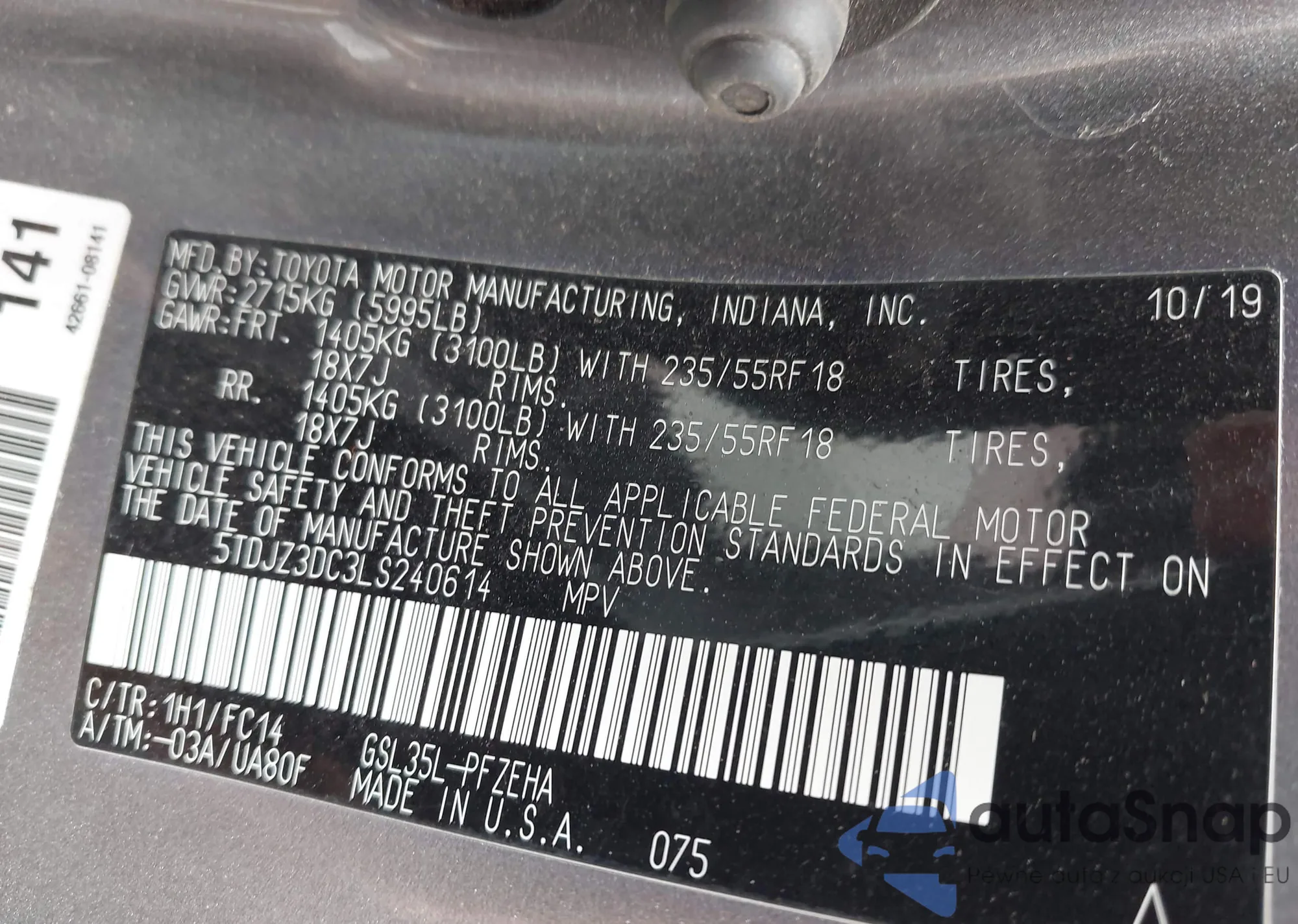 • VIN 5TDJZ3DC3LS240614