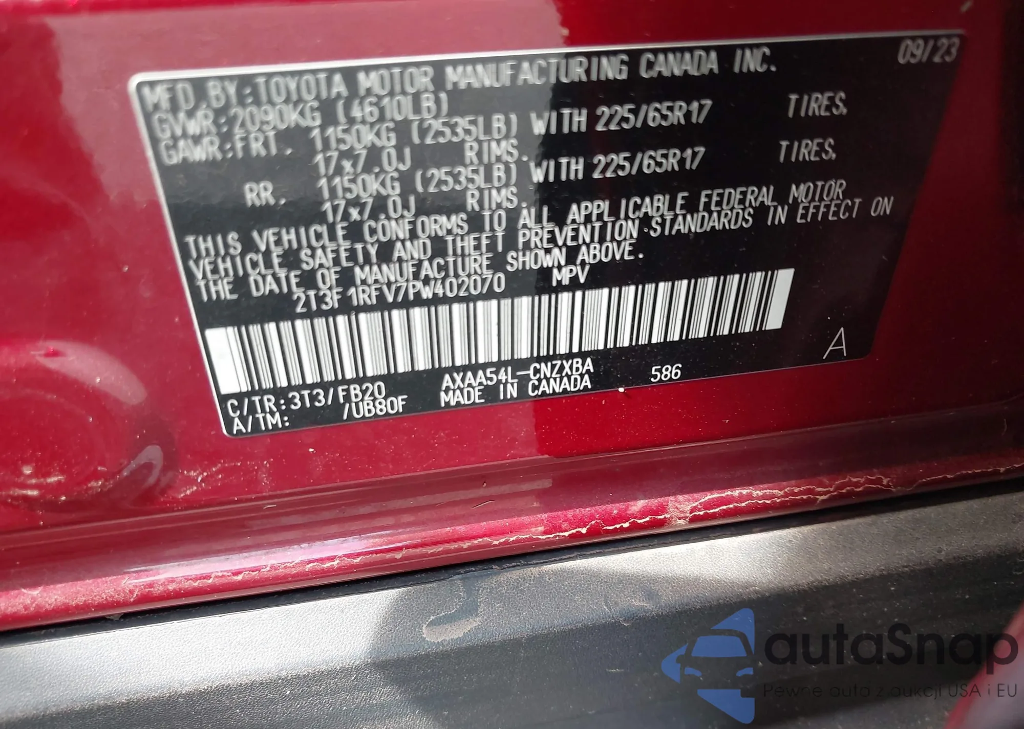 LOT: 42761268 VIN: 2T3F1RFV7PW402070