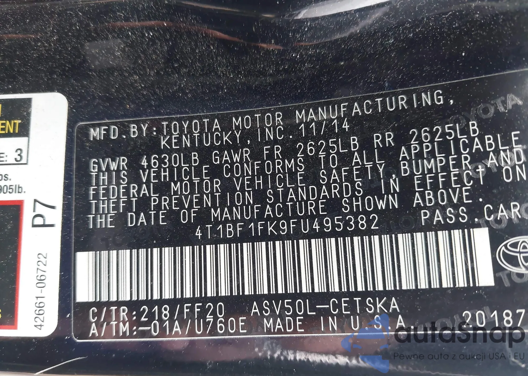 • VIN 4T1BF1FK9FU495382