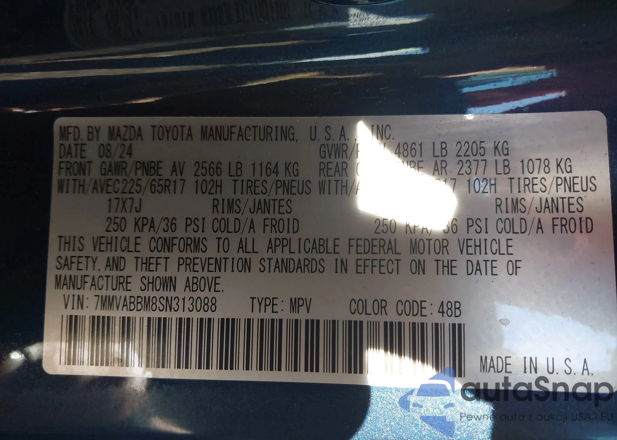 • VIN 7MMVABBM8SN313088