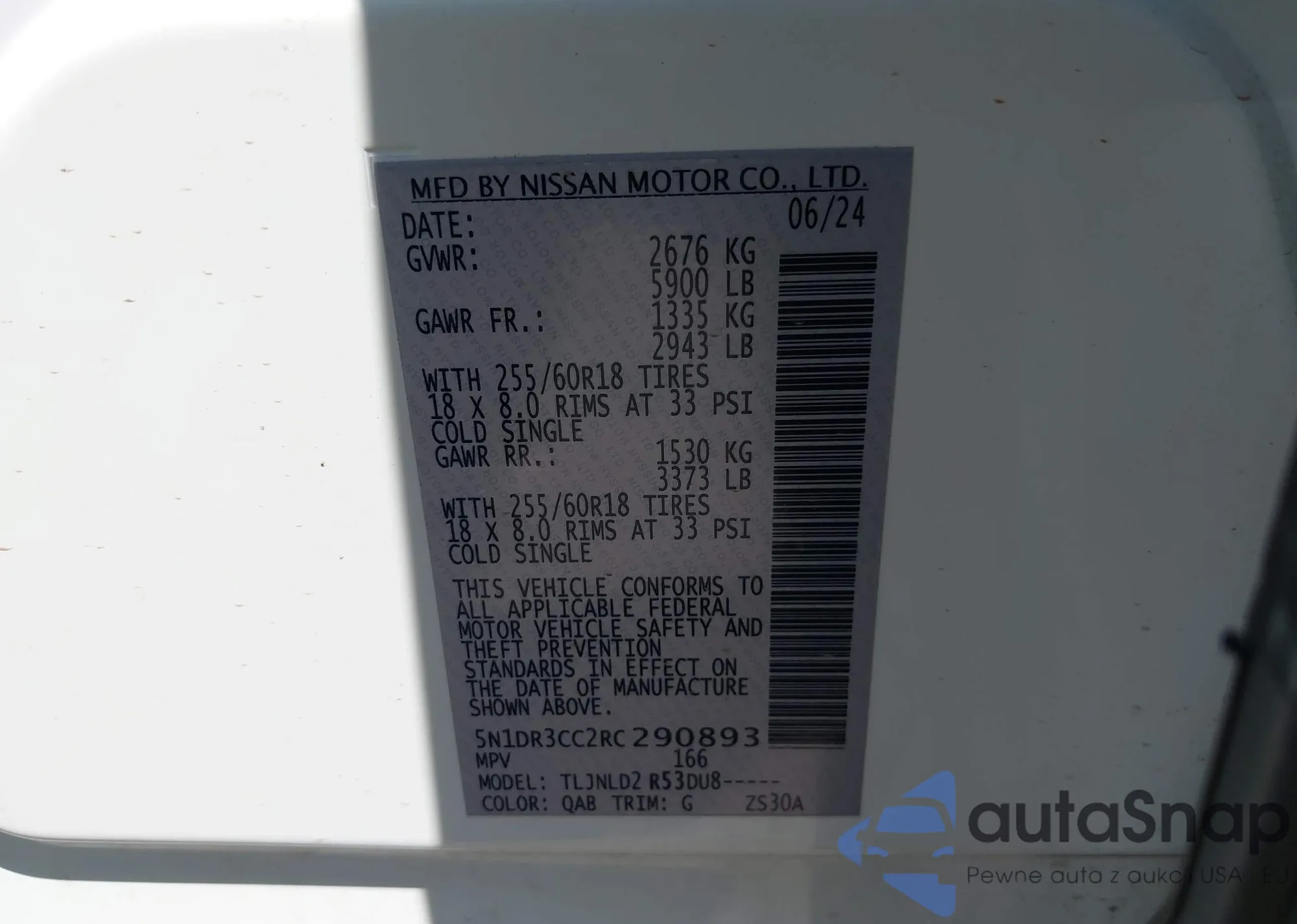 LOT: 42822106 VIN: 5N1DR3CC2RC290893