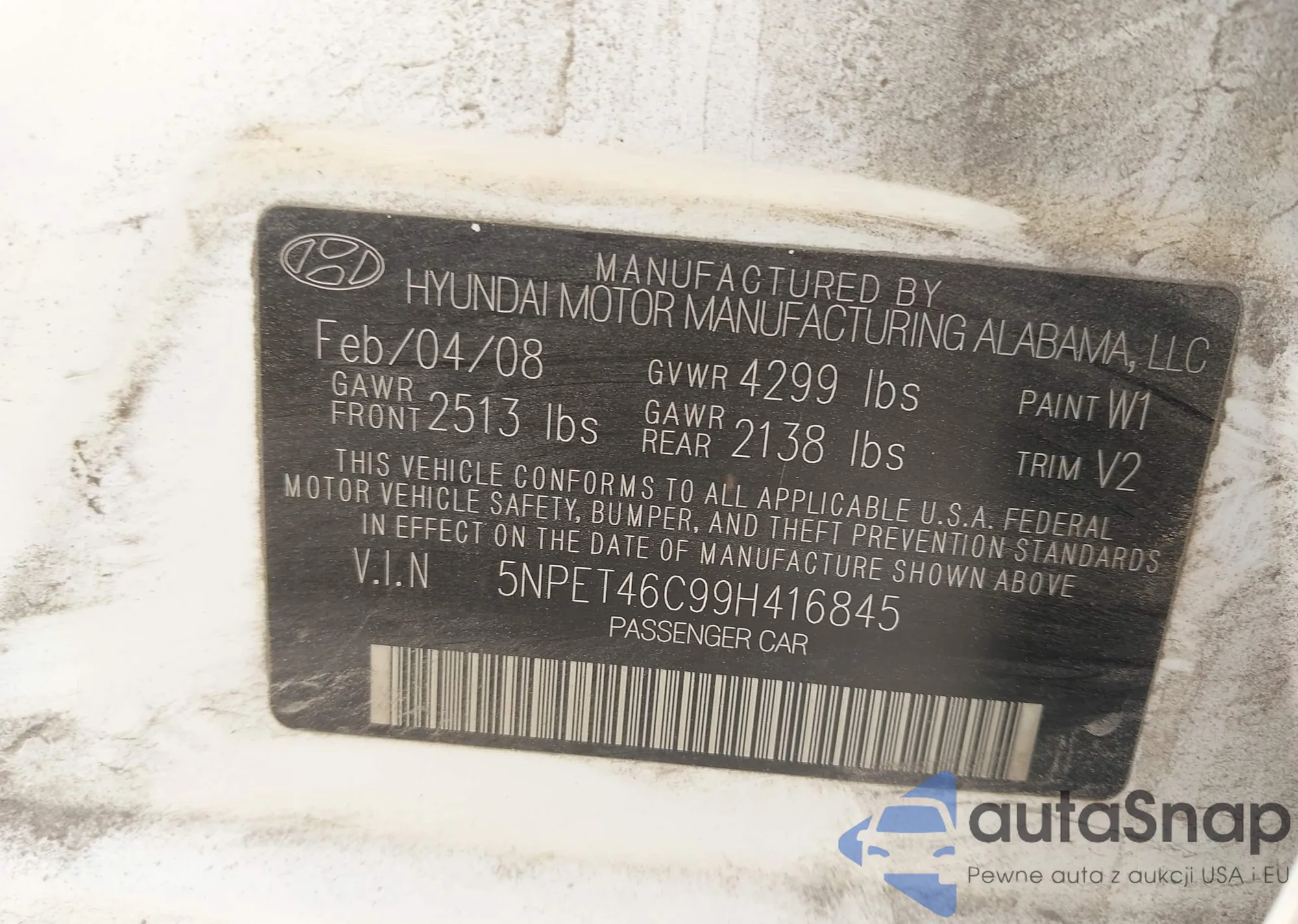 LOT: 42867431 VIN: 5NPEU46F99H499457