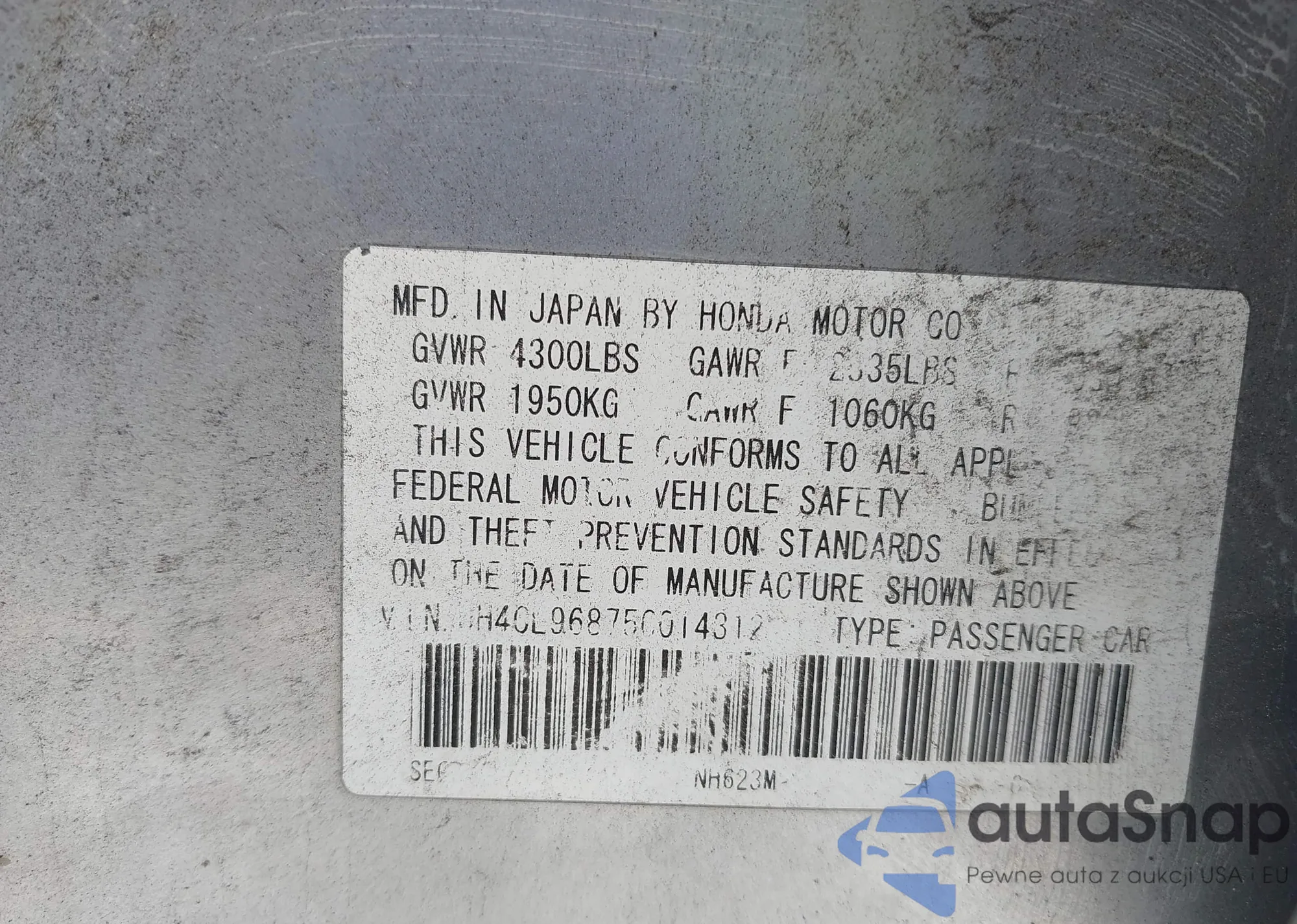 LOT: 42830250 VIN: JH4CL96875C014312