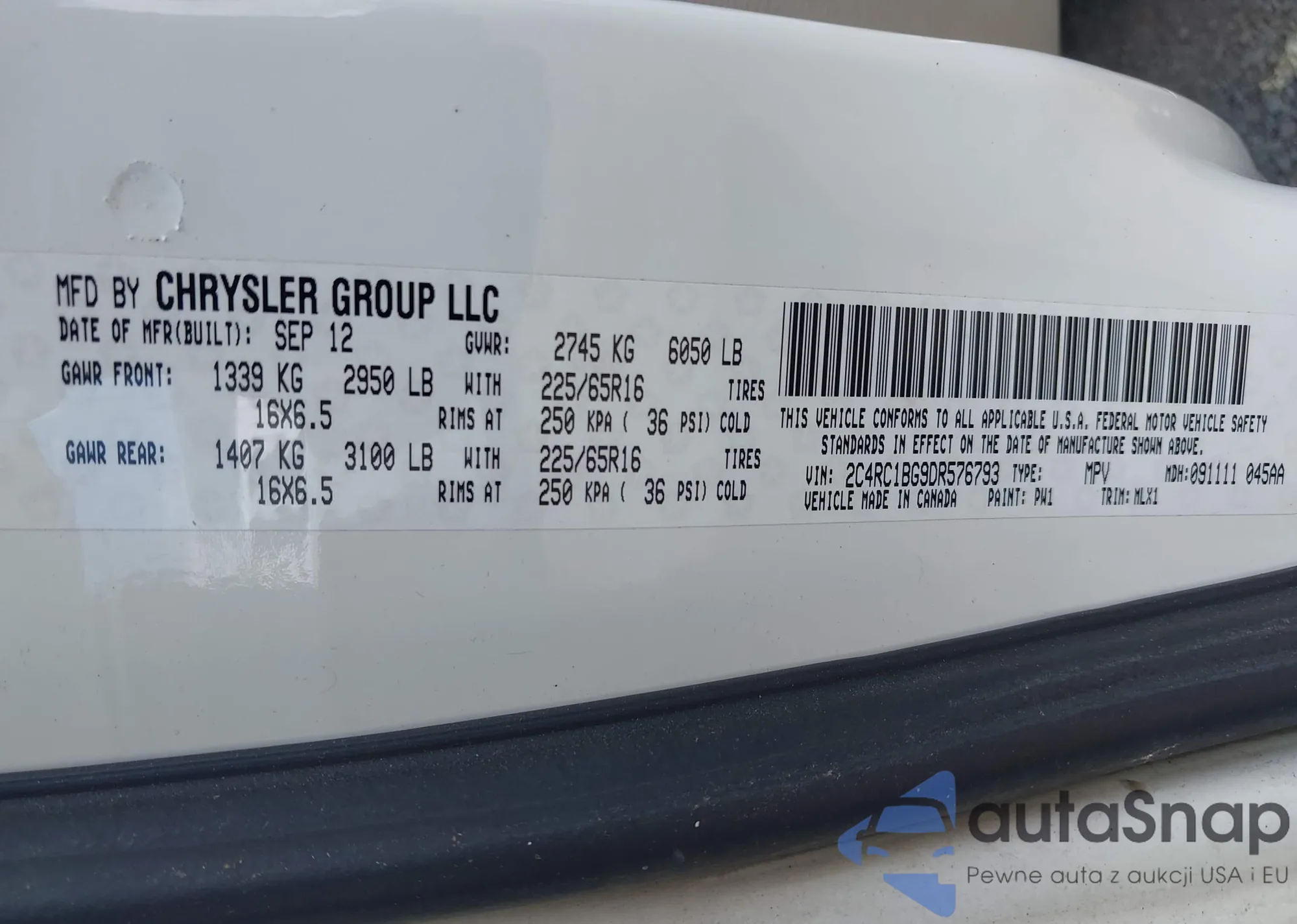 • VIN 2C4RC1BG9DR576793