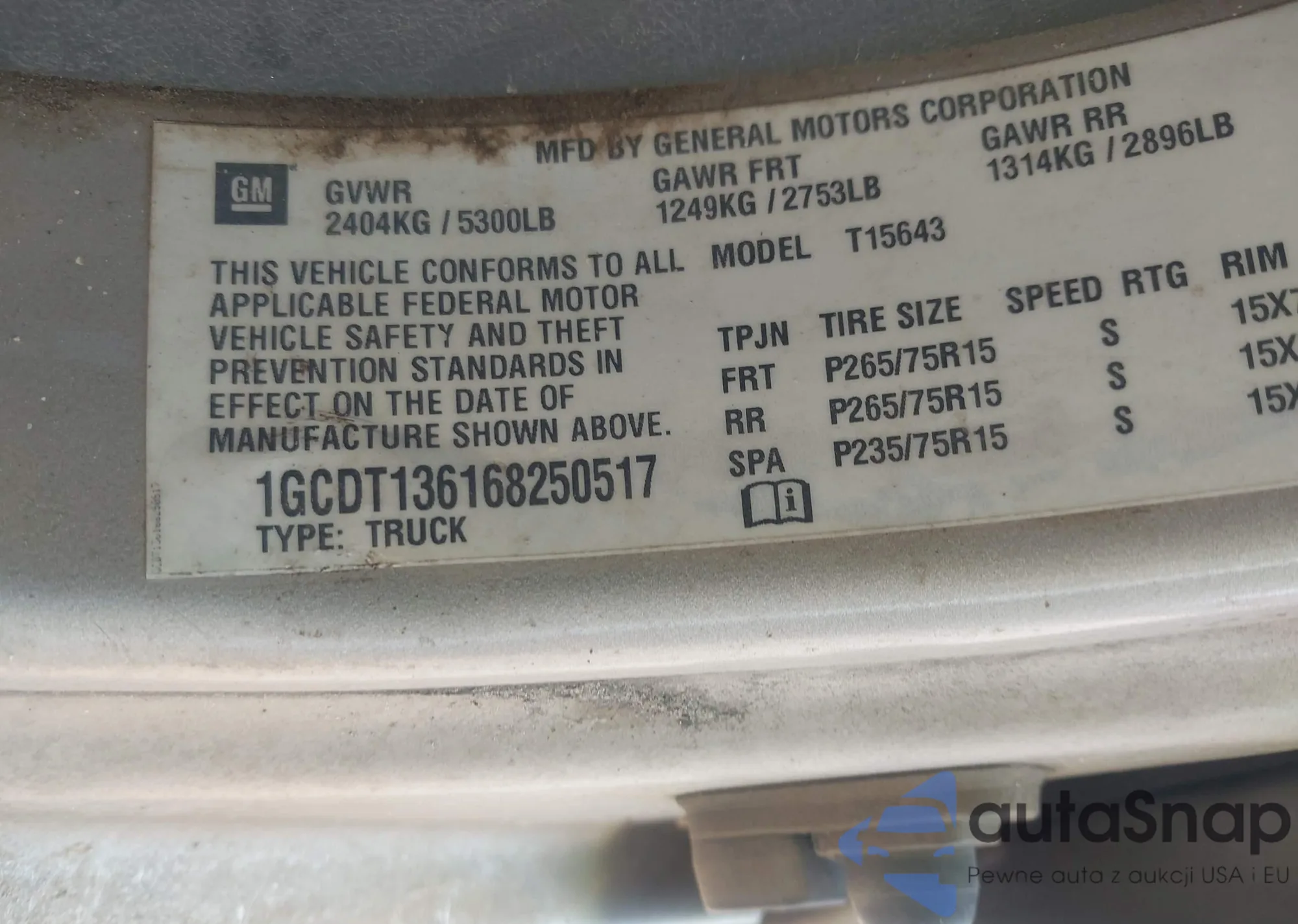 LOT: 42761671 VIN: 1GCDT136168250517