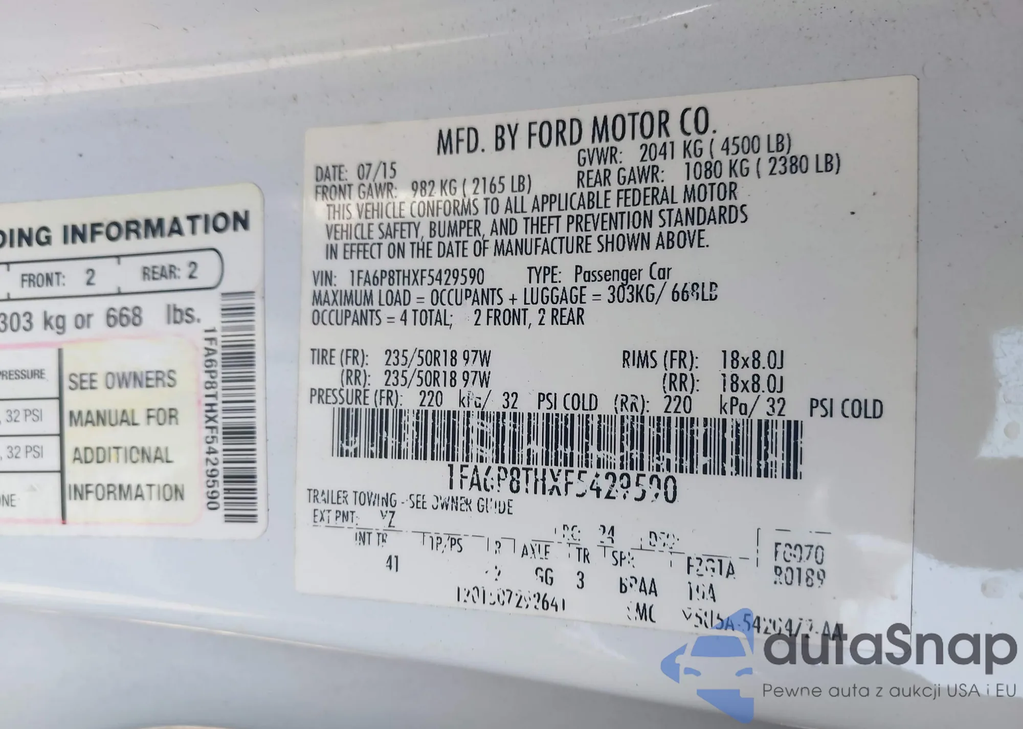 • VIN 1FMCU0GX5DUC66452