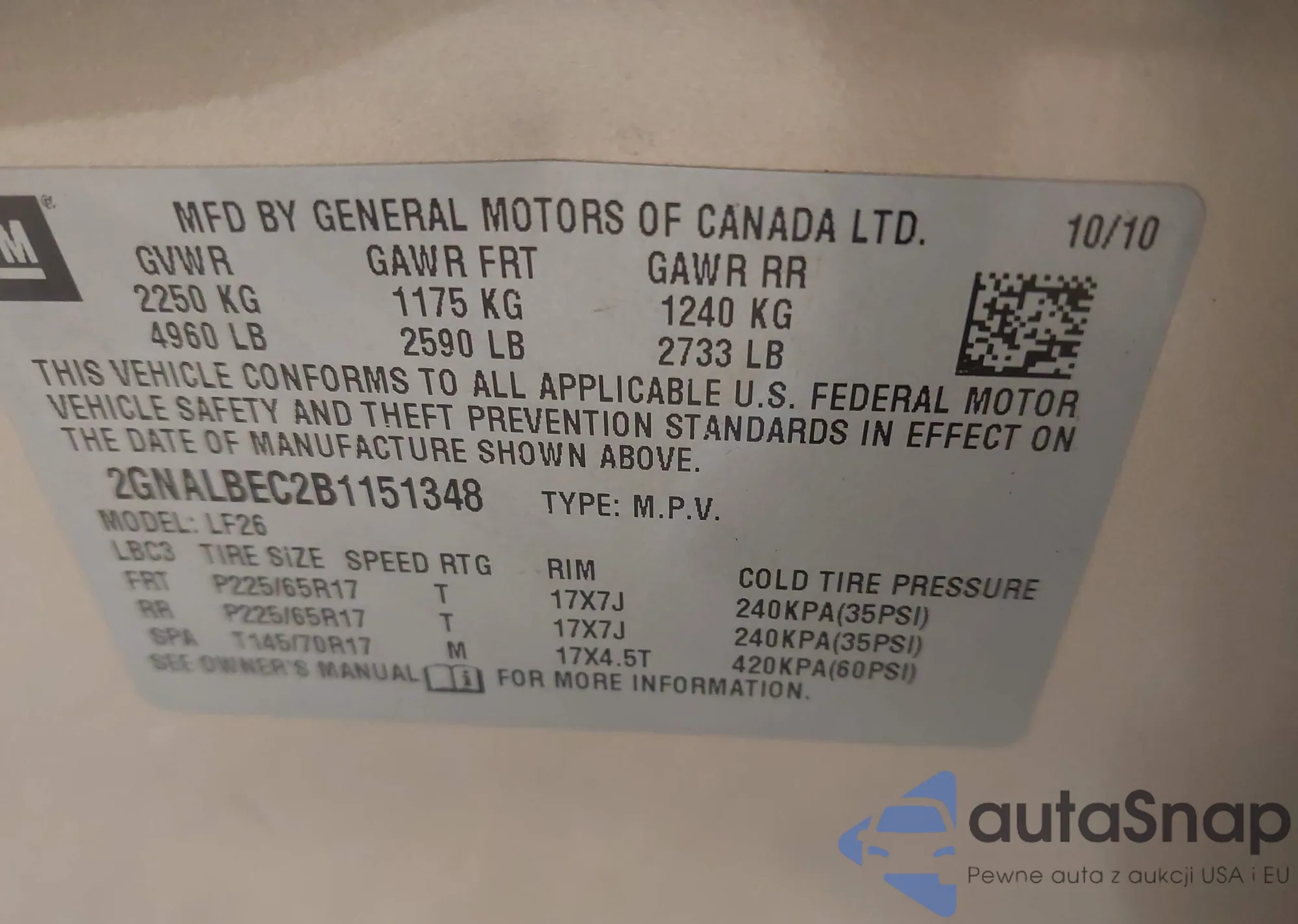 • VIN 2GNALBEC2B1151348