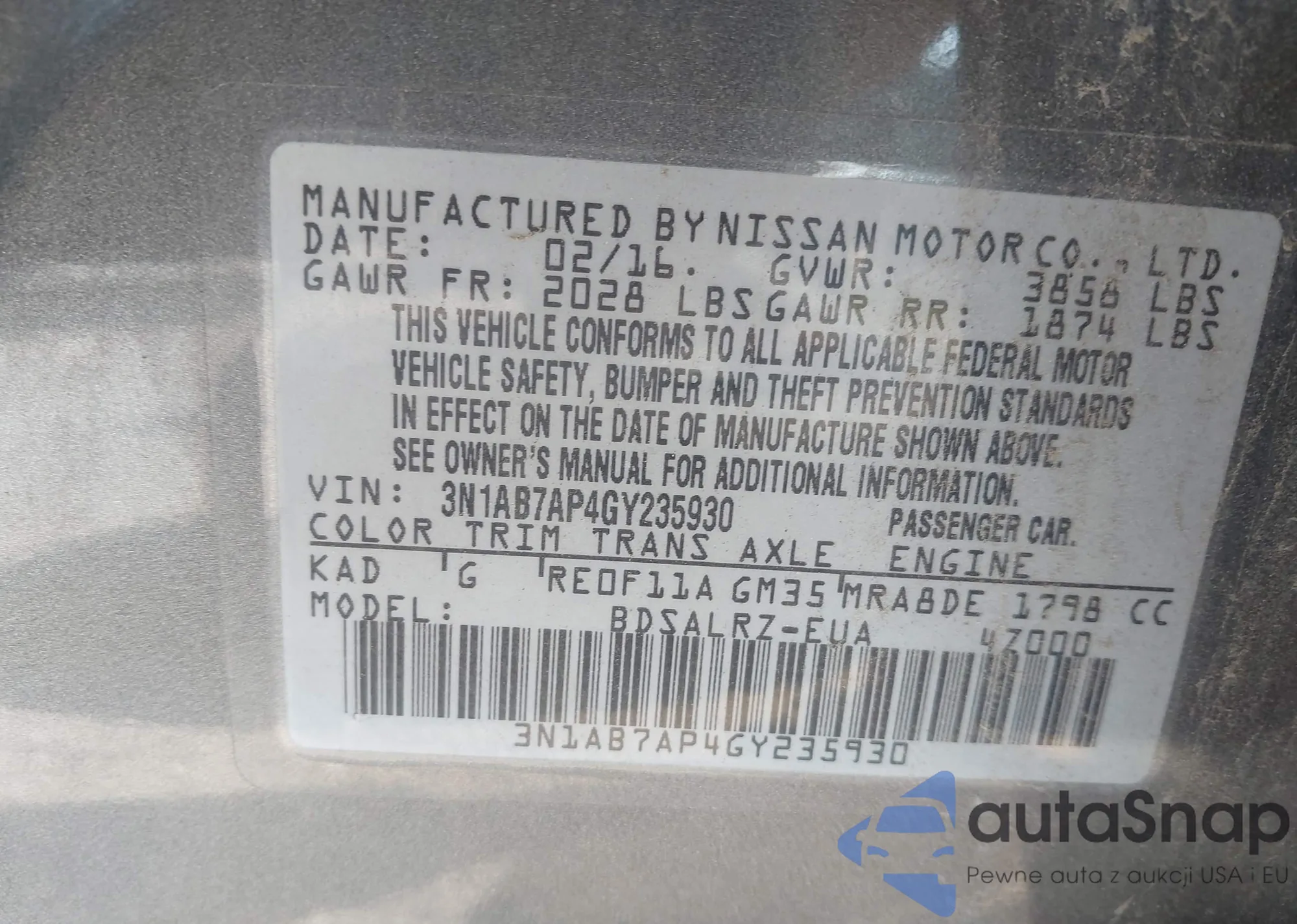 • VIN 3N1AB7AP4GY235930