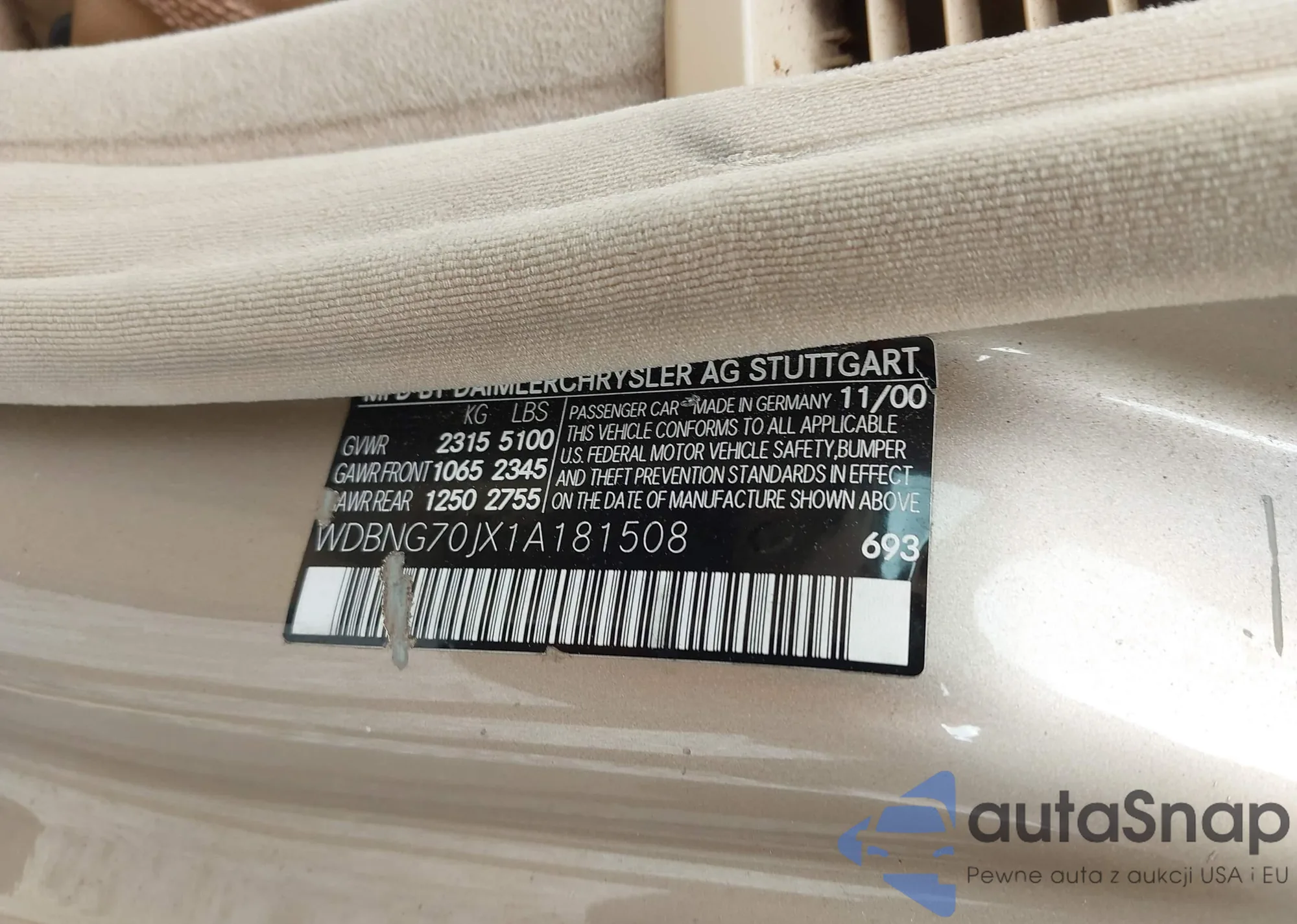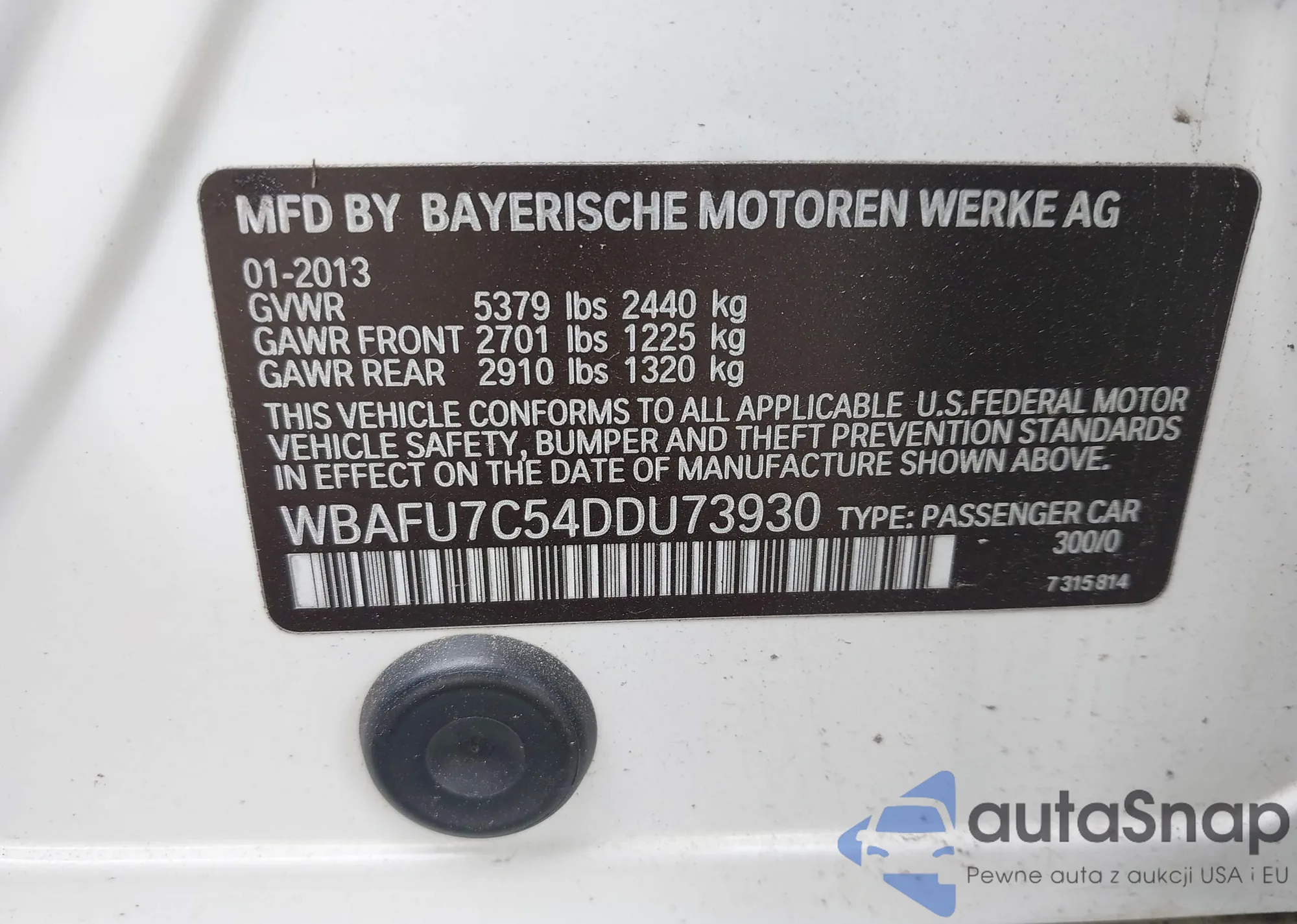 LOT: 42225232 VIN: WBAPH7C51BE676838