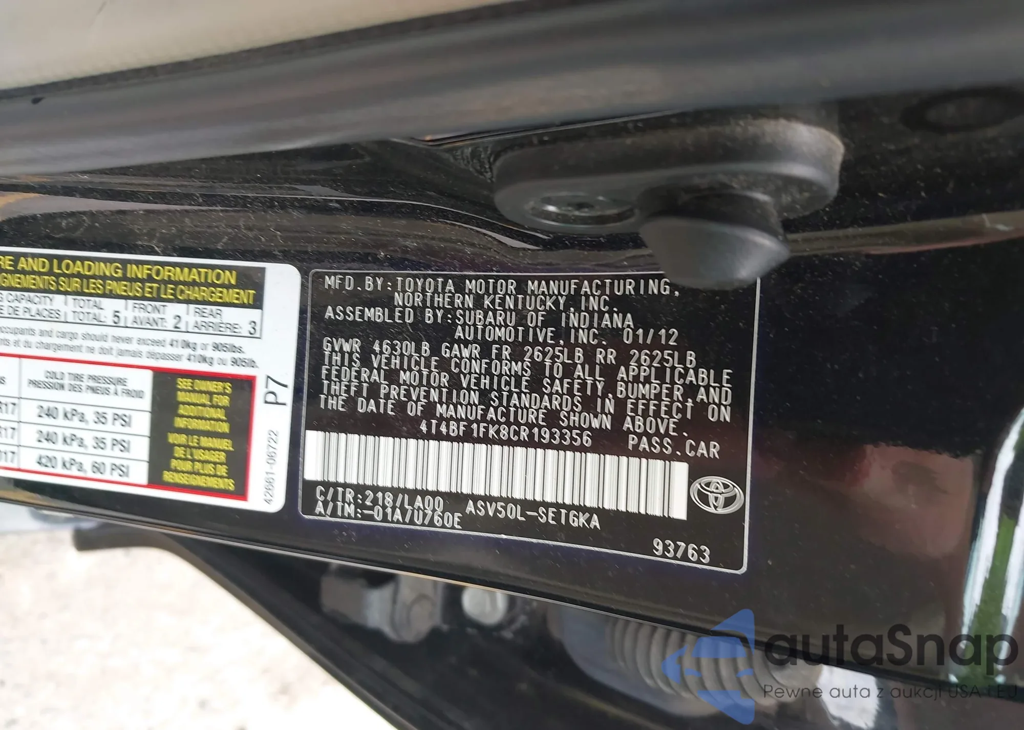 LOT: 42553510 VIN: 4T1G11AKXMU588422