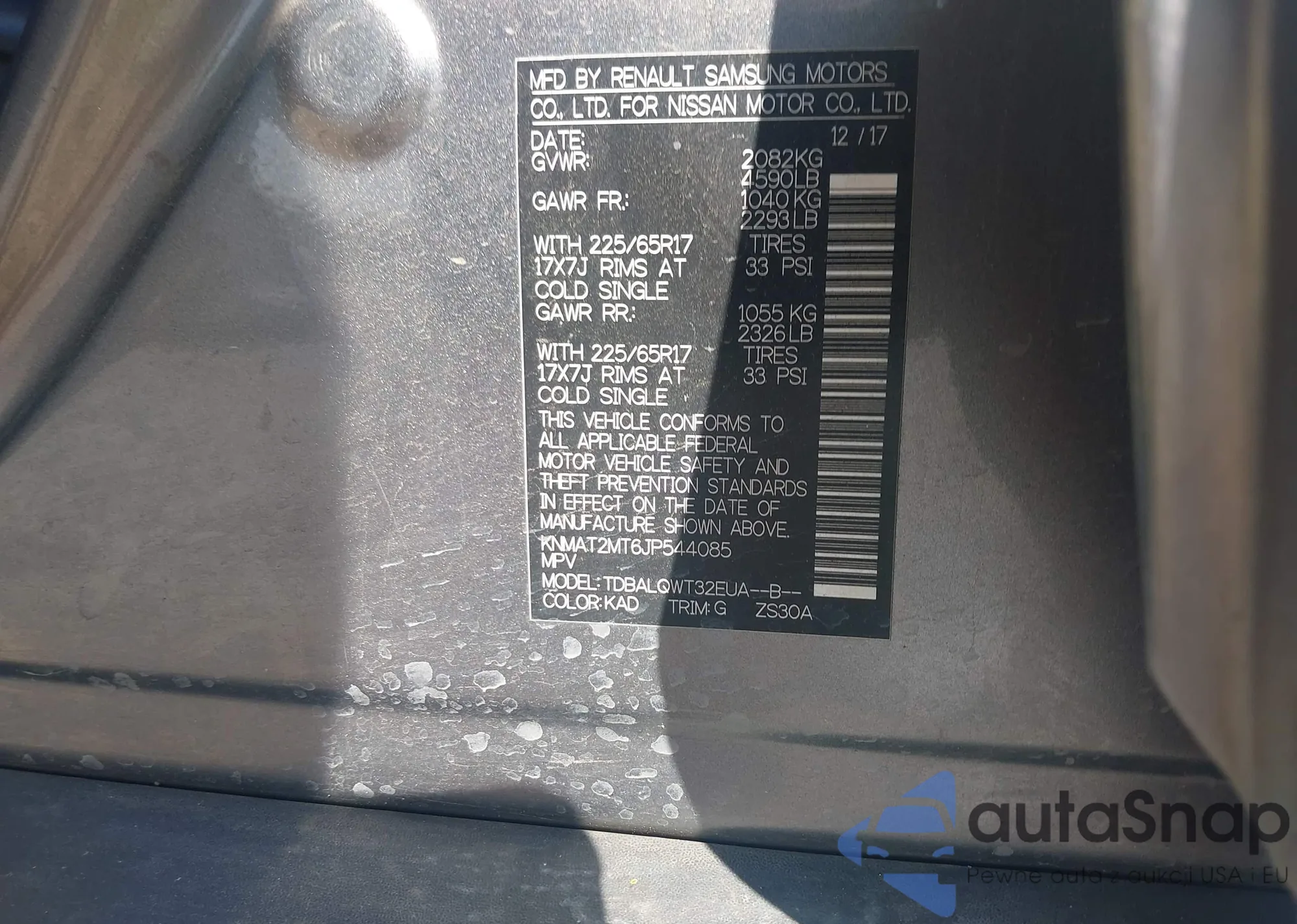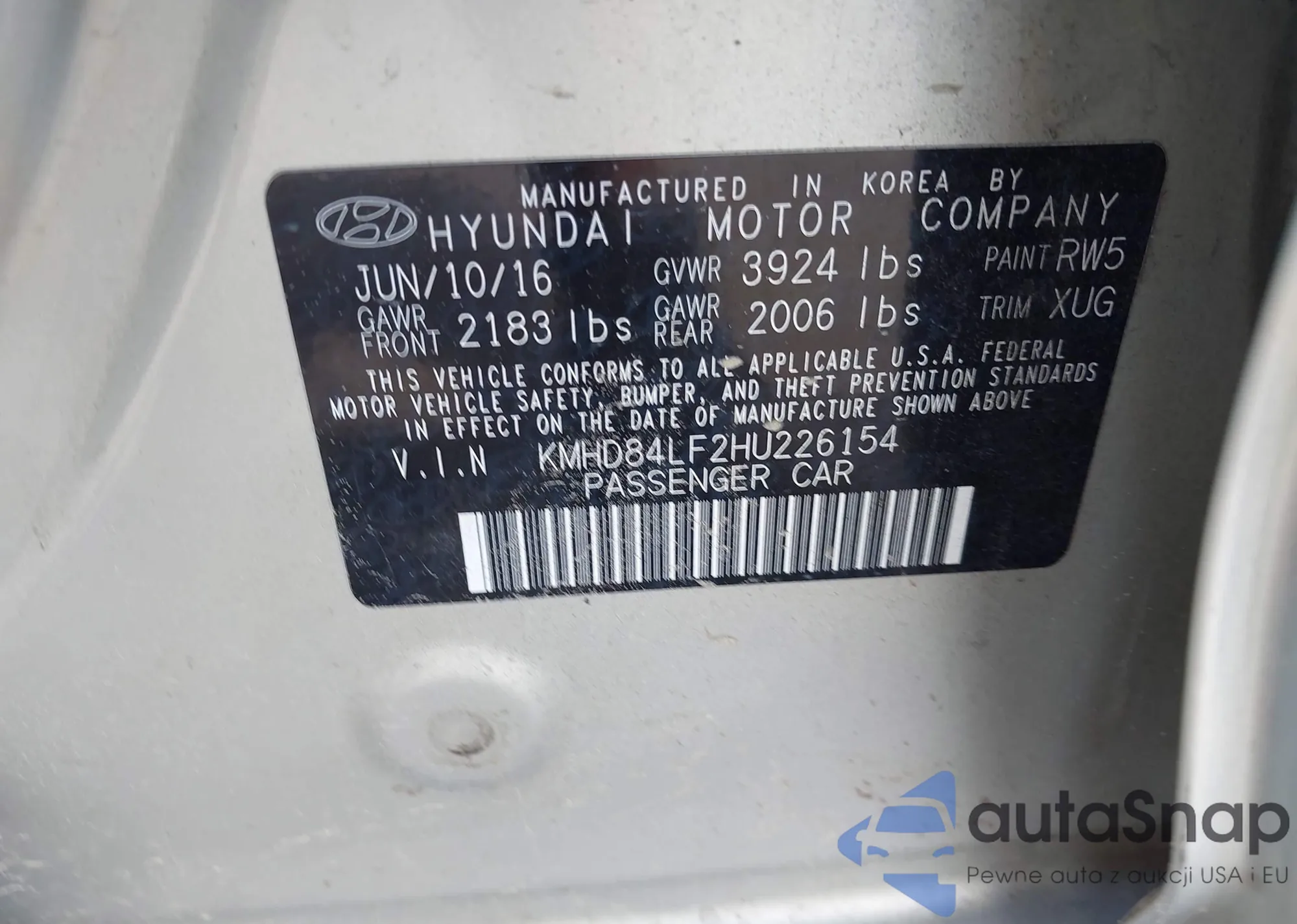 LOT: 42974293 VIN: KMHD84LF2HU226154
