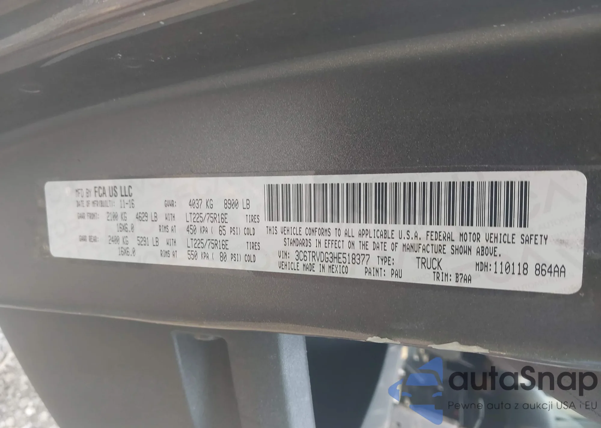 LOT: 42215522 VIN: 1C4PJMAB9FW606597