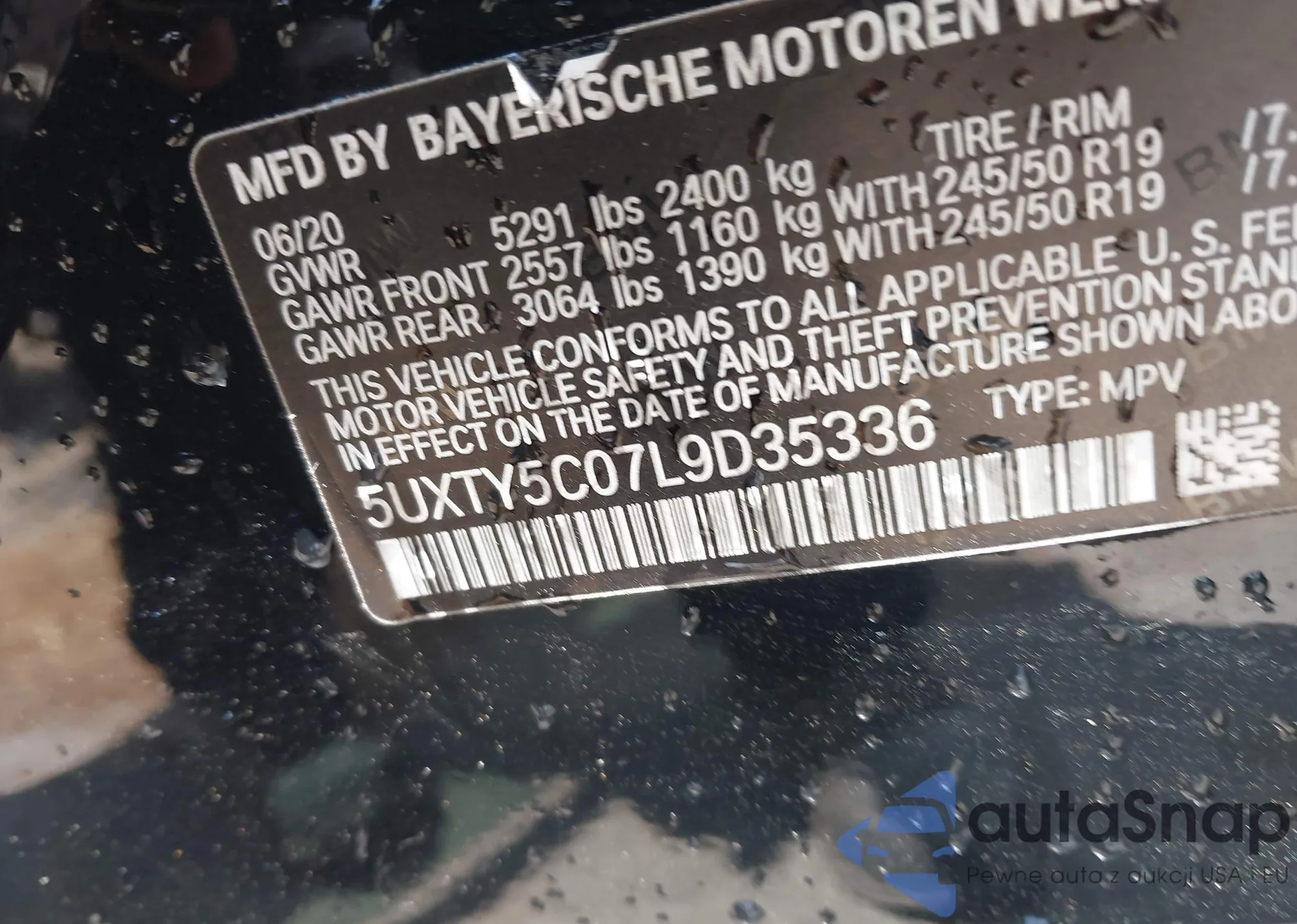 LOT: 42547379 VIN: 5UXTY5C07L9D35336