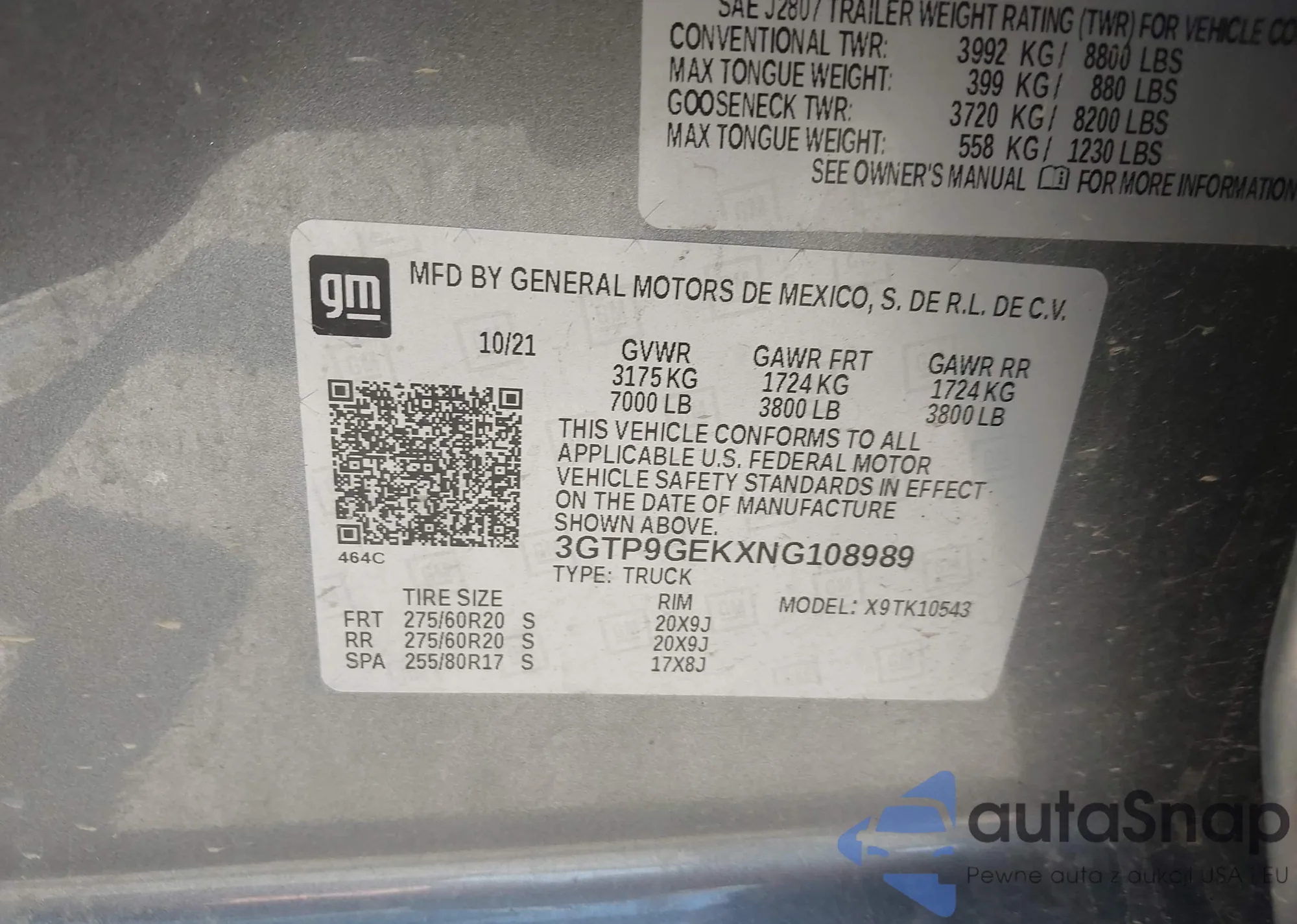 • VIN 3GNKBBRAXLS646189