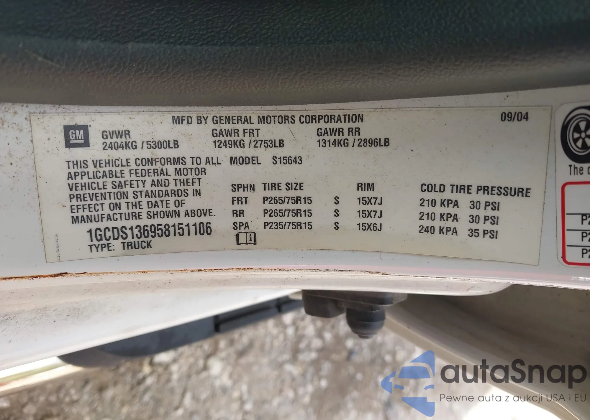 • VIN 1GCDS136958151106