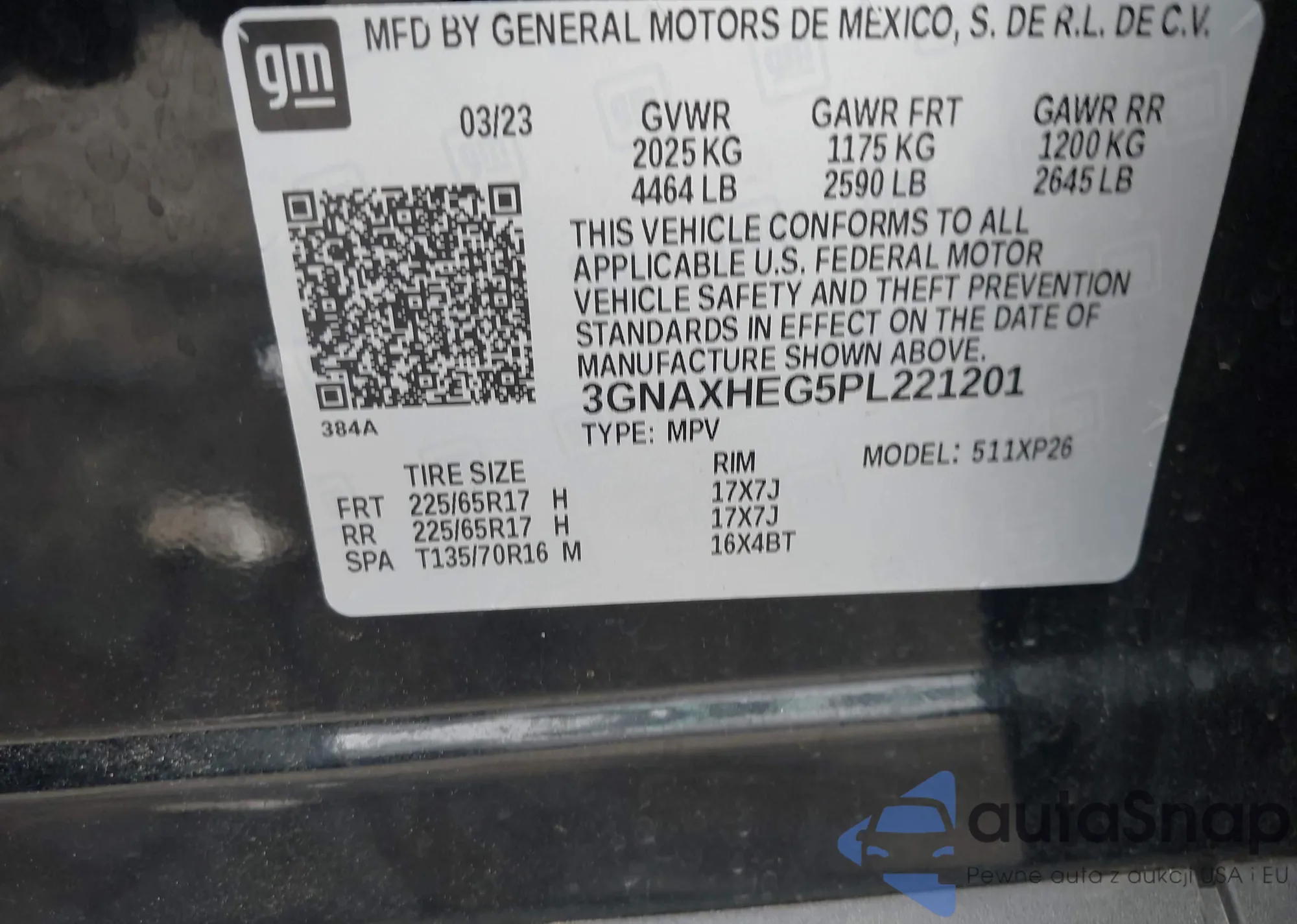 • VIN 3GNAXHEG5PL221201