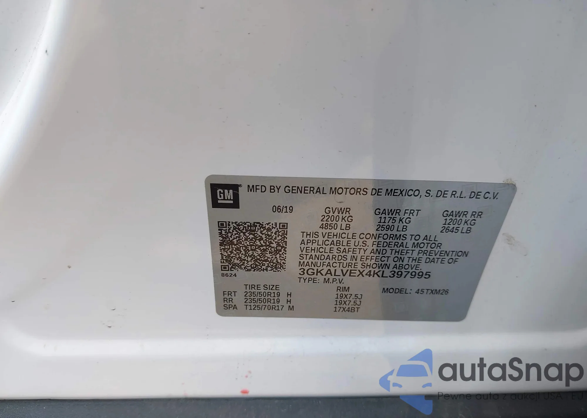 LOT: 42710486 VIN: 3GKALVEX4KL397995