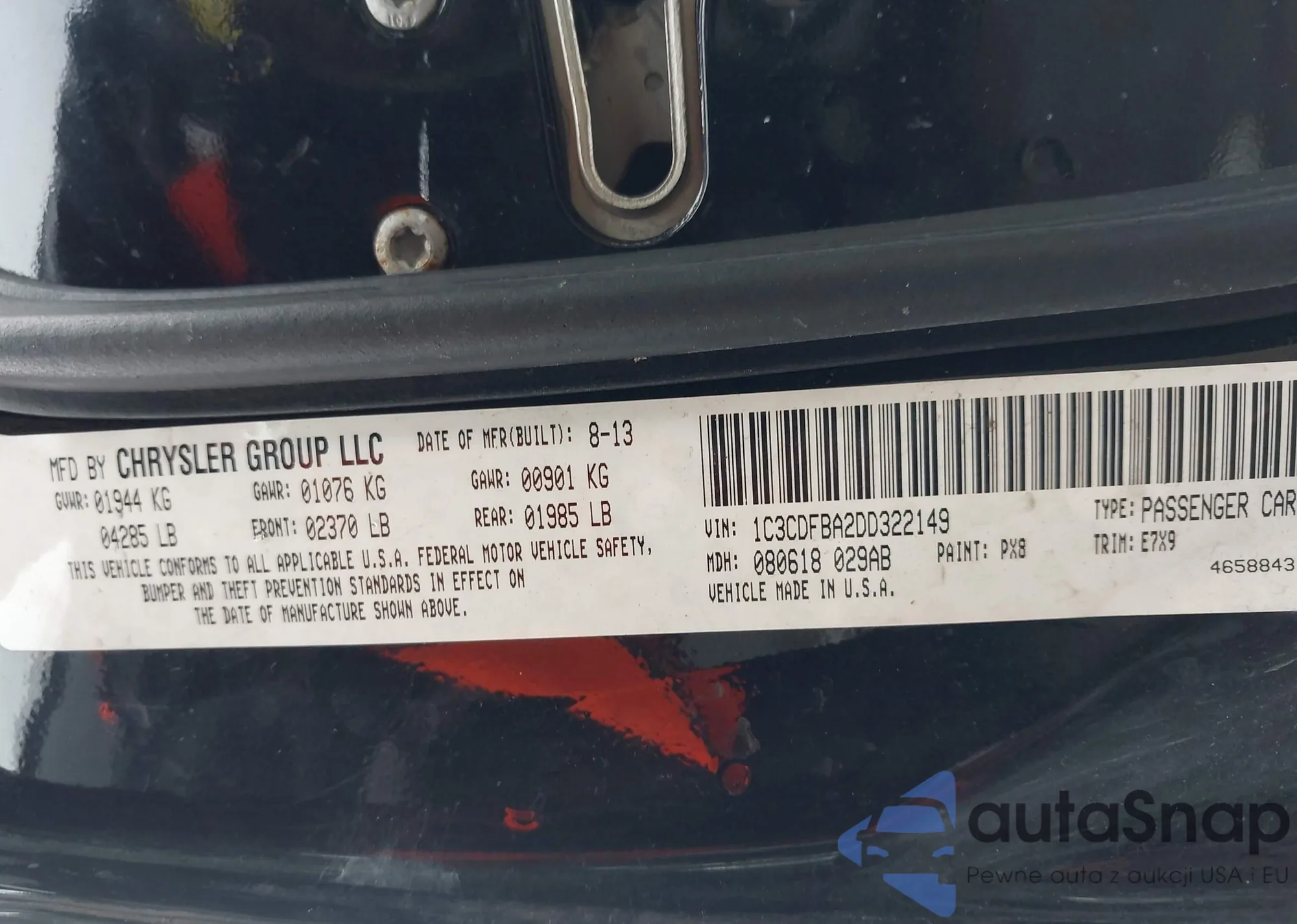 • VIN 1C3CDFBA2DD322149
