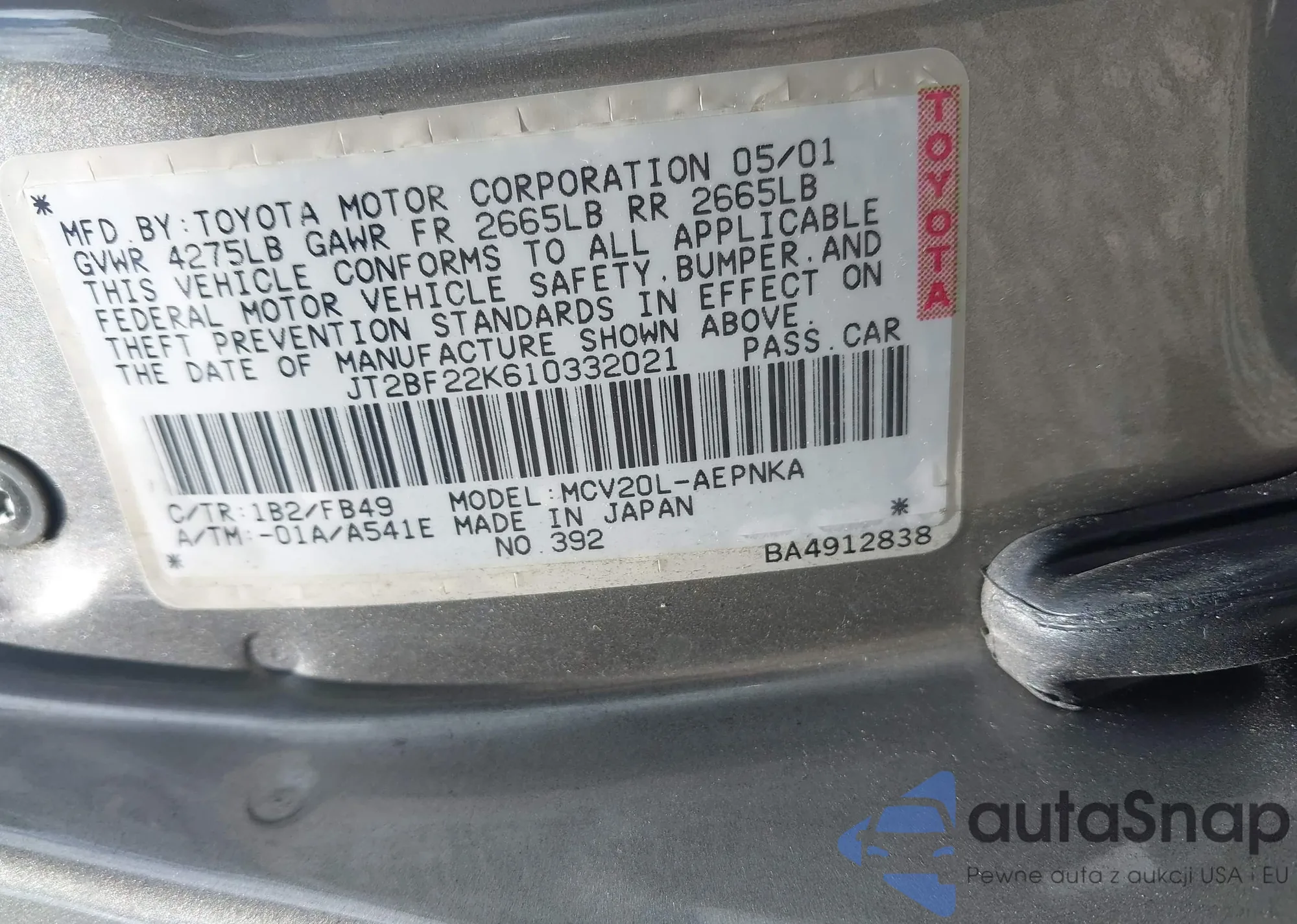 • VIN JT2BF22K610332021