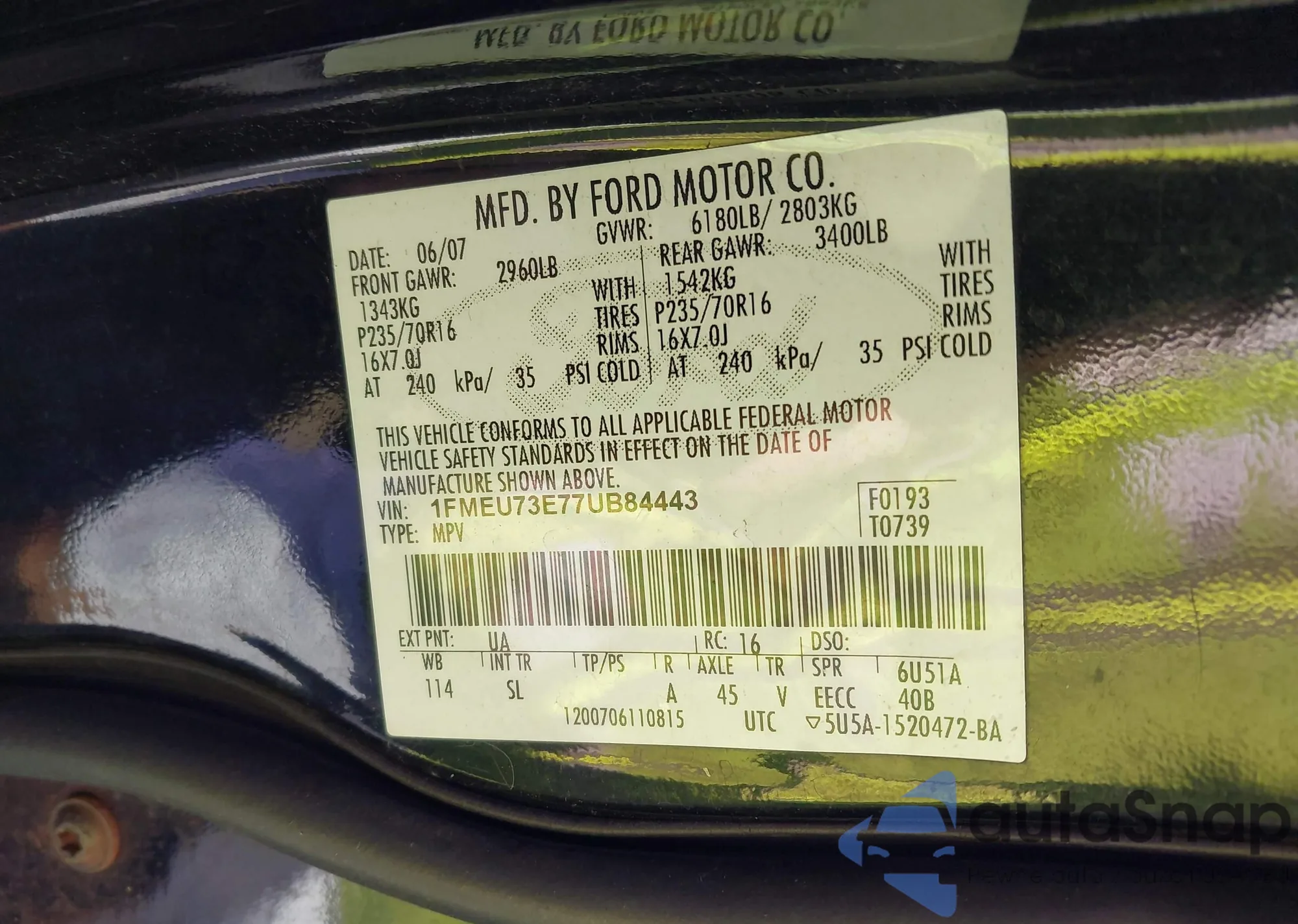 • VIN 1FMEU73E77UB84443