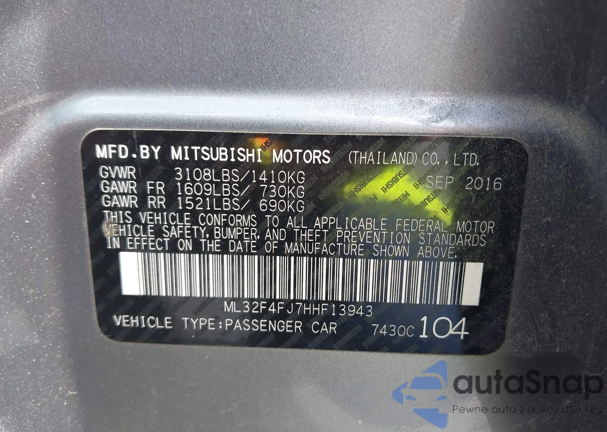 LOT: 42906674 VIN: ML32F4FJ7HHF13943