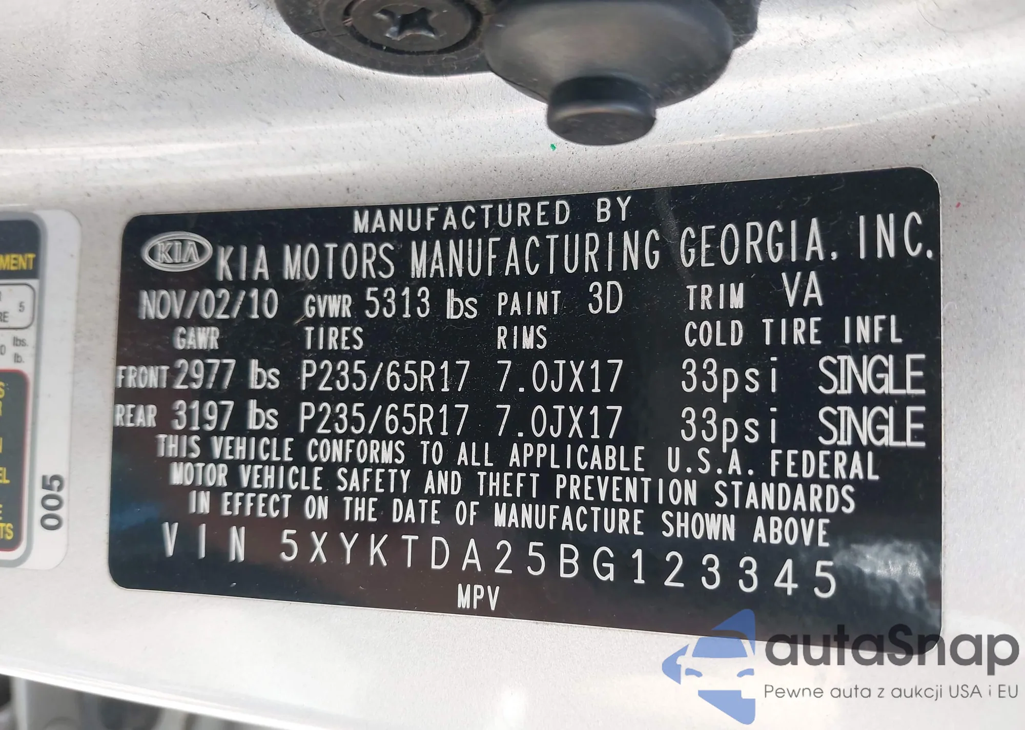 • VIN 5XYKTDA25BG123345