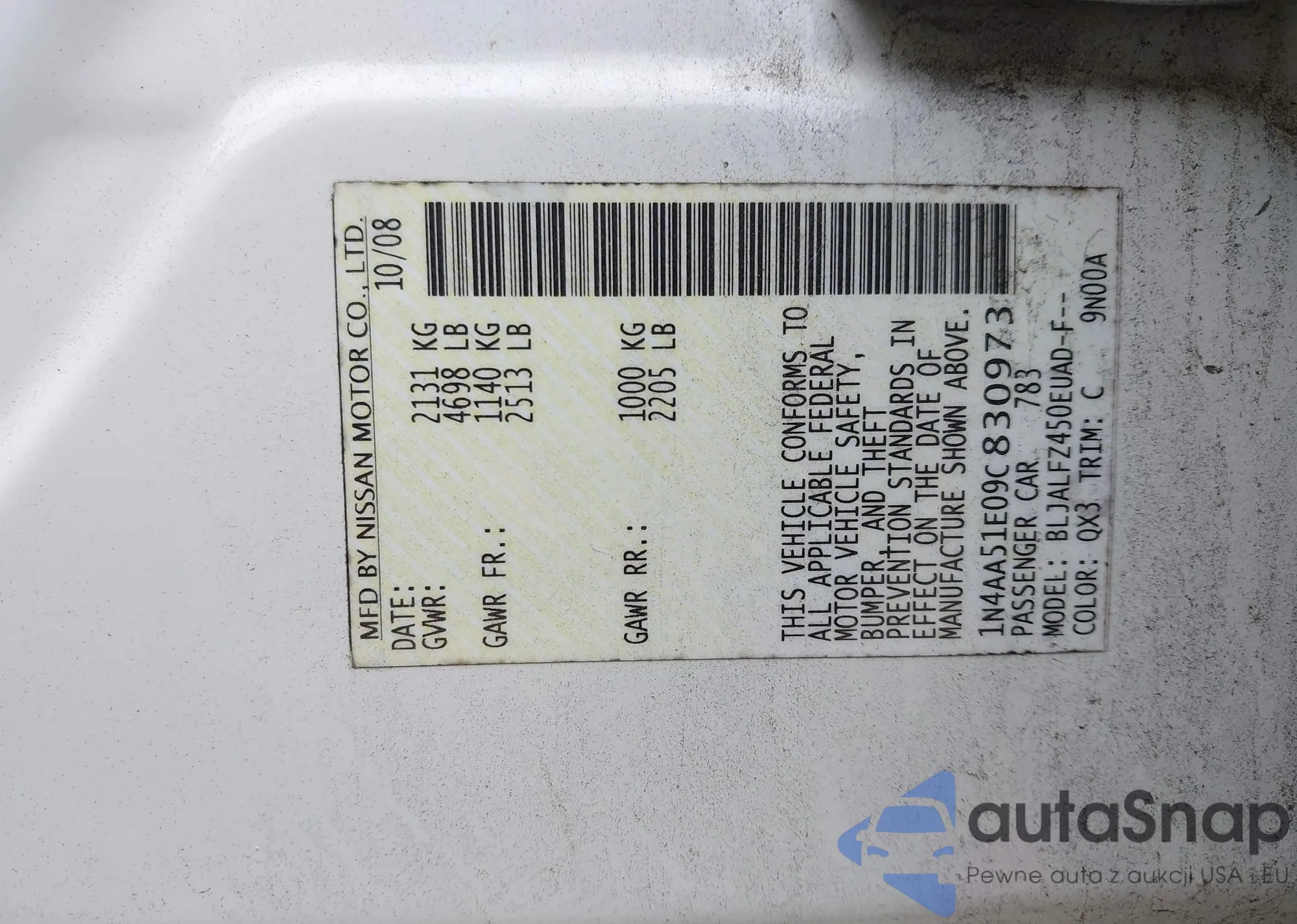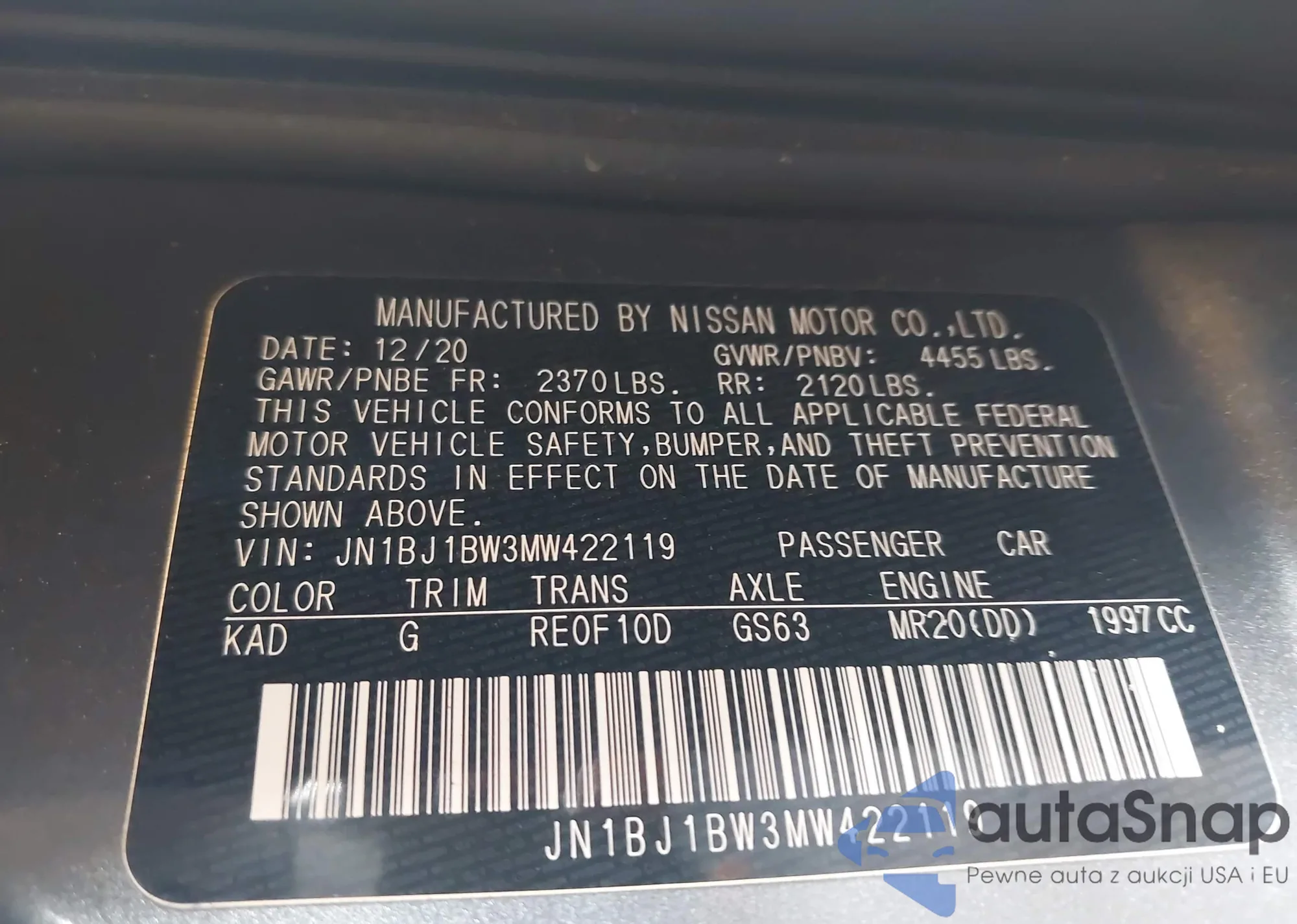 LOT: 42637281 VIN: JN1BJ1BW3MW422119
