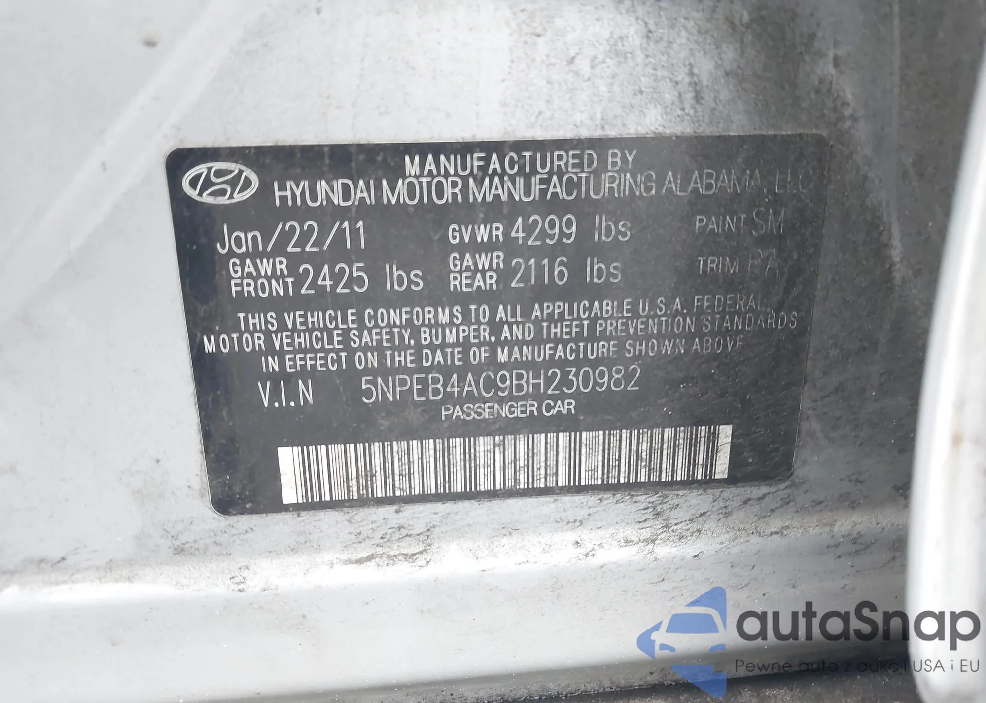 LOT: 42915889 VIN: 5NPEB4AC9BH230982