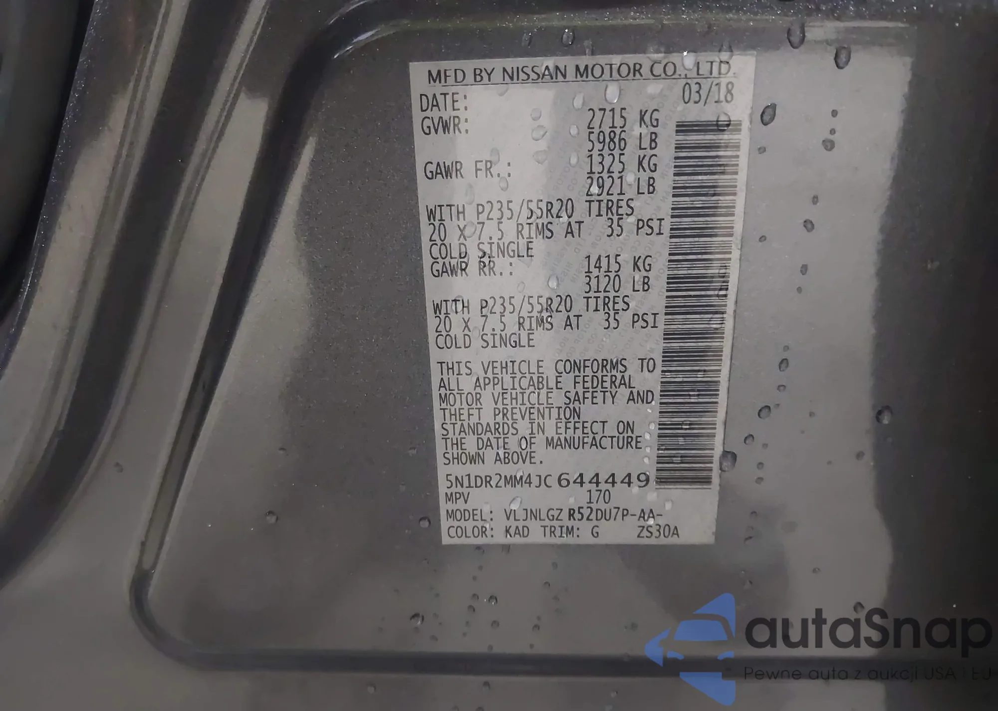 LOT: 42879813 VIN: 5N1DR2MM4JC644449