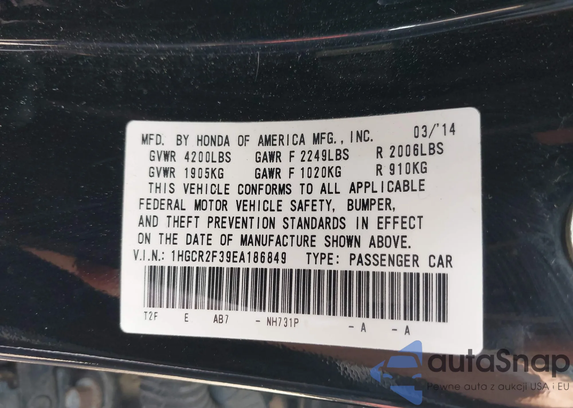 • VIN 2HKRM4H77FH663839
