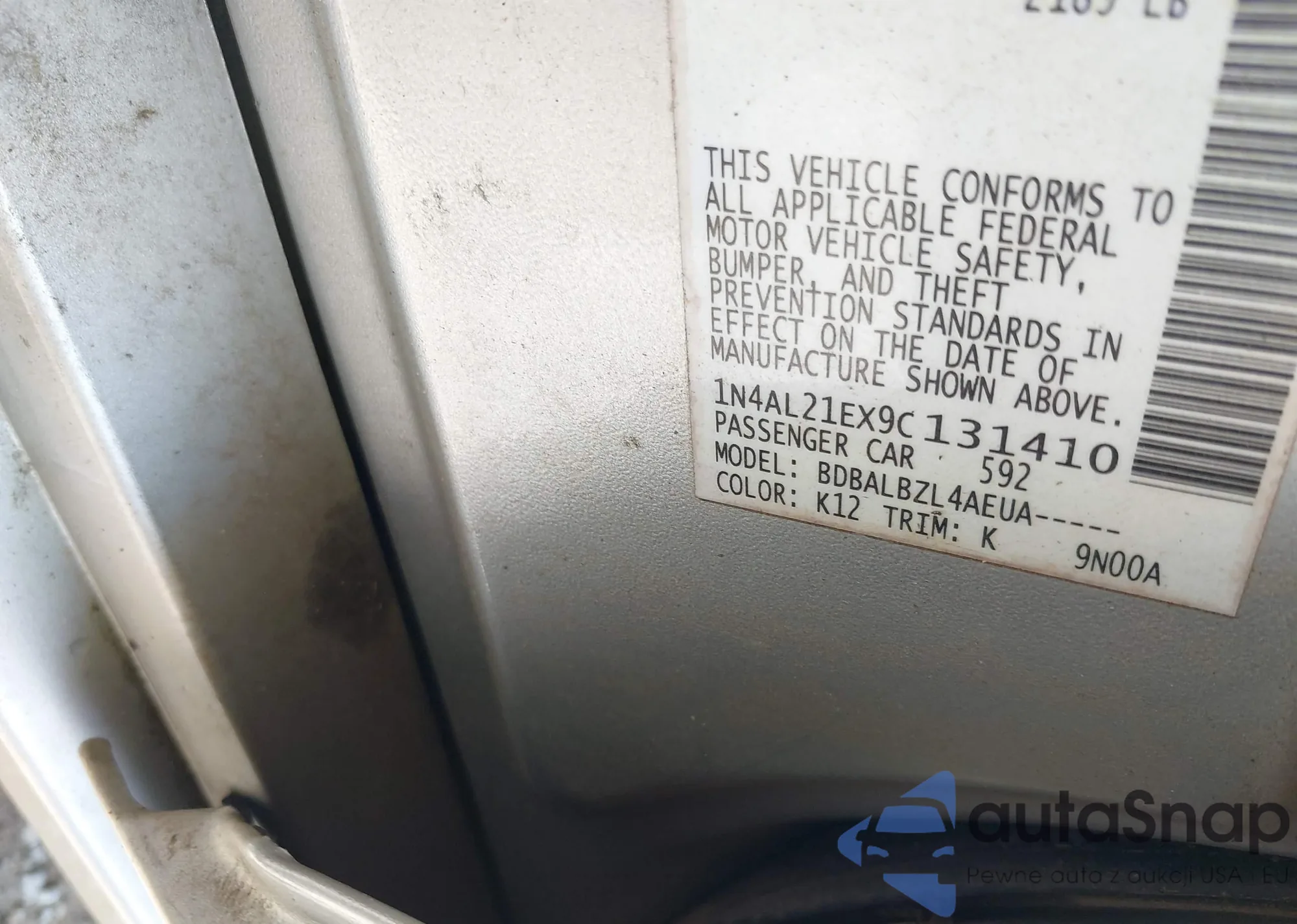 LOT: 42408898 VIN: 1N4AL21EX9C131410